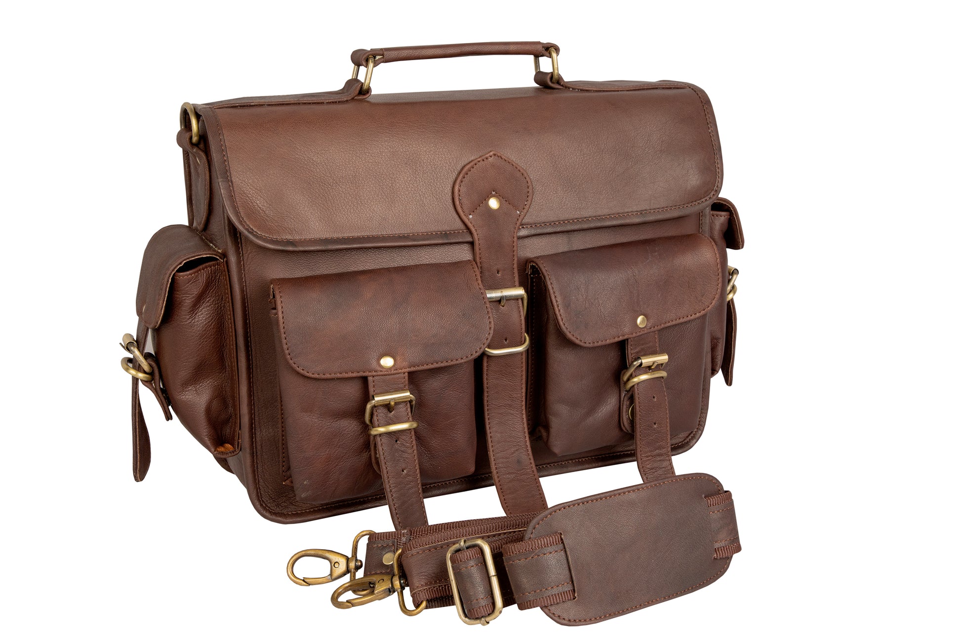 15 Inch Black Leather Laptop Briefcase Messenger Bag For Unisex.