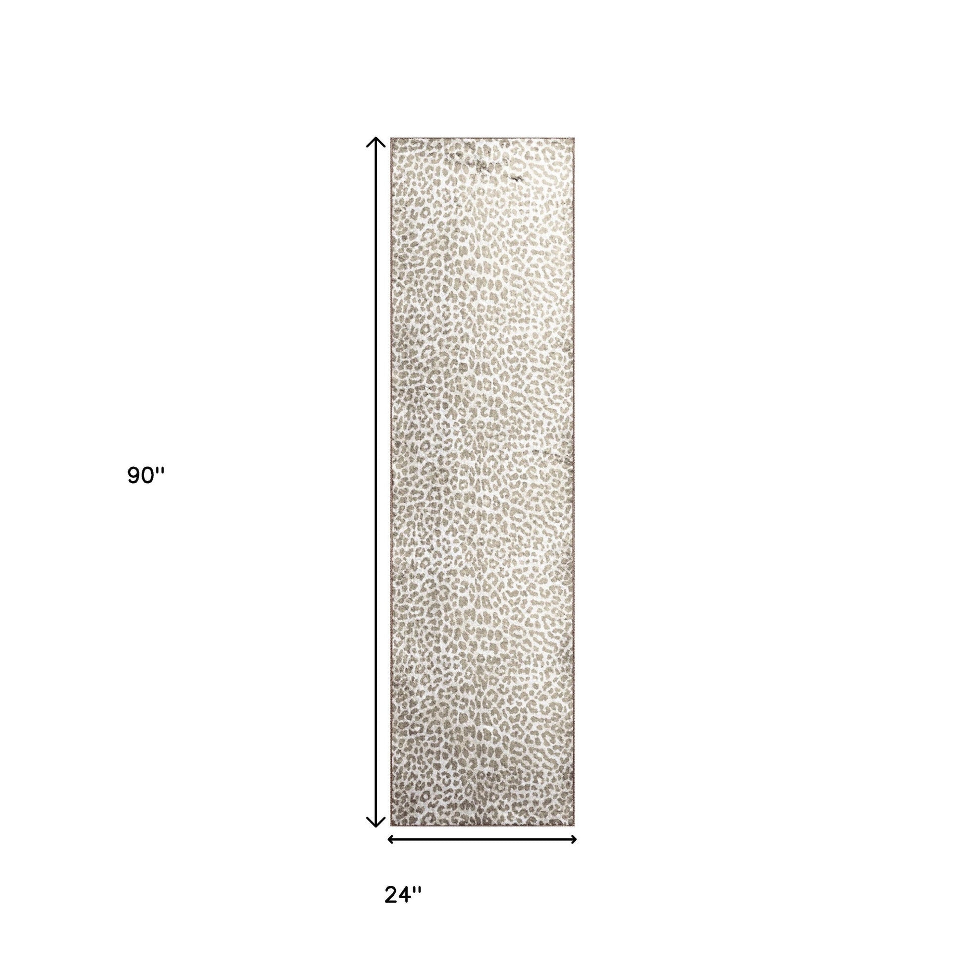2' X 8' Beige and Cream Leopard Print Shag Handmade Non Skid Runner