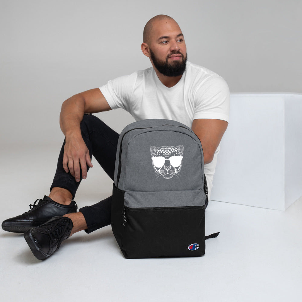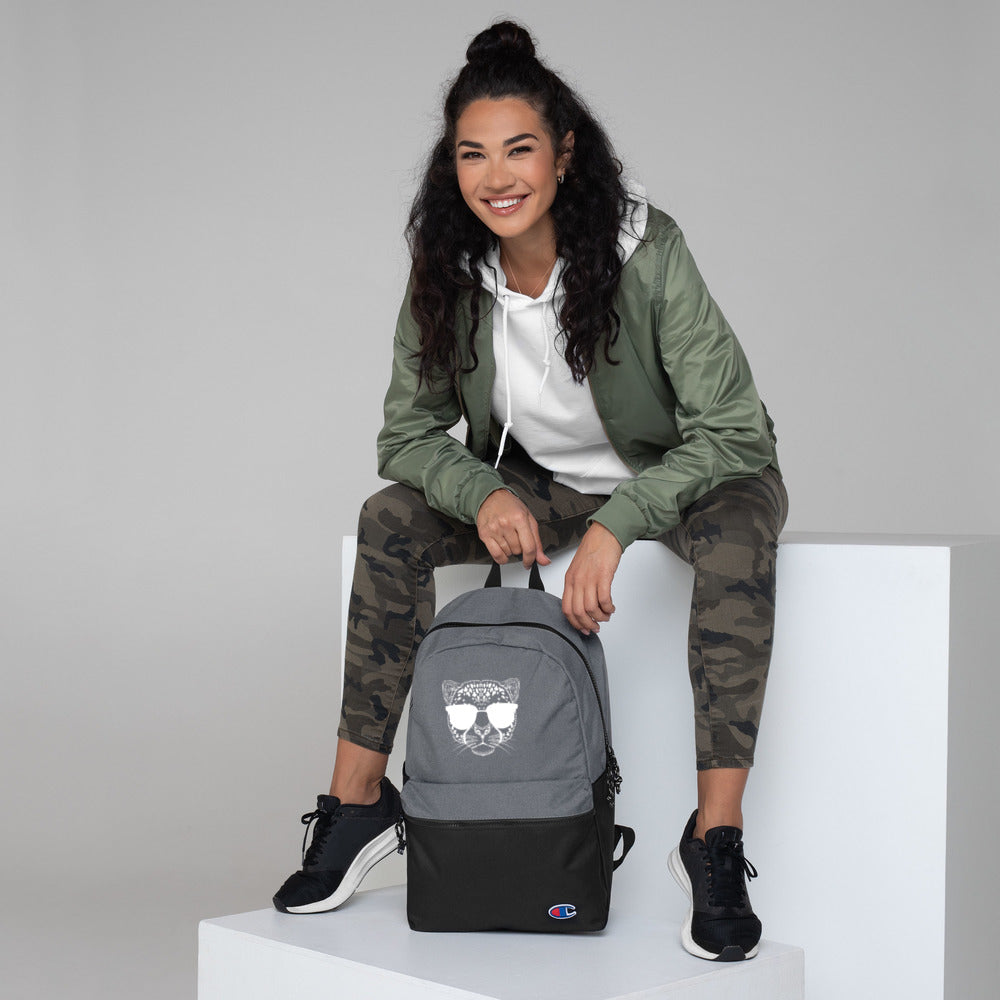 • Padded ergonomic polyester bag straps with plastic strap regulators and Champion brand label on the left strap