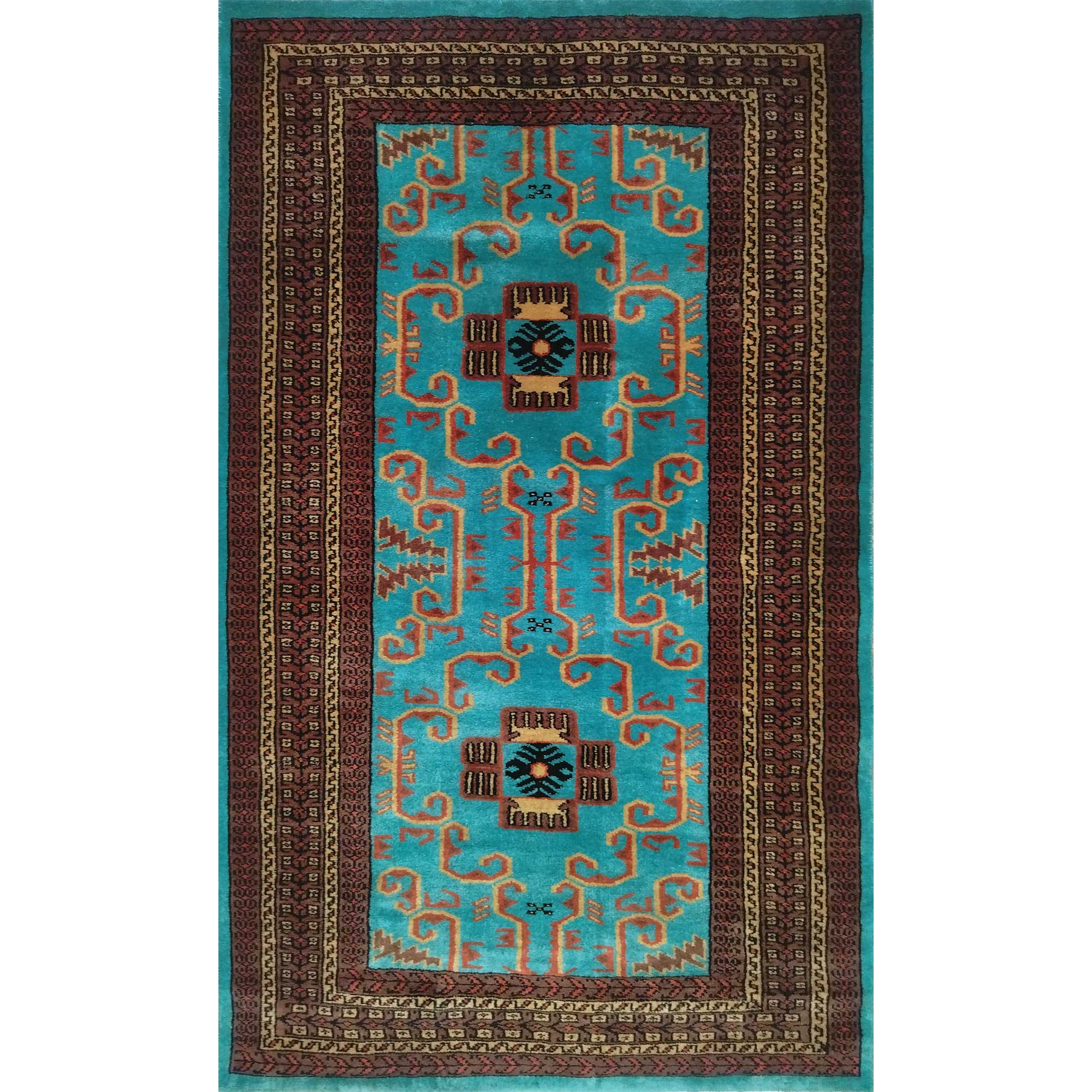 3×5 feet Hand Knotted Wool Carpet Turquoise Palace