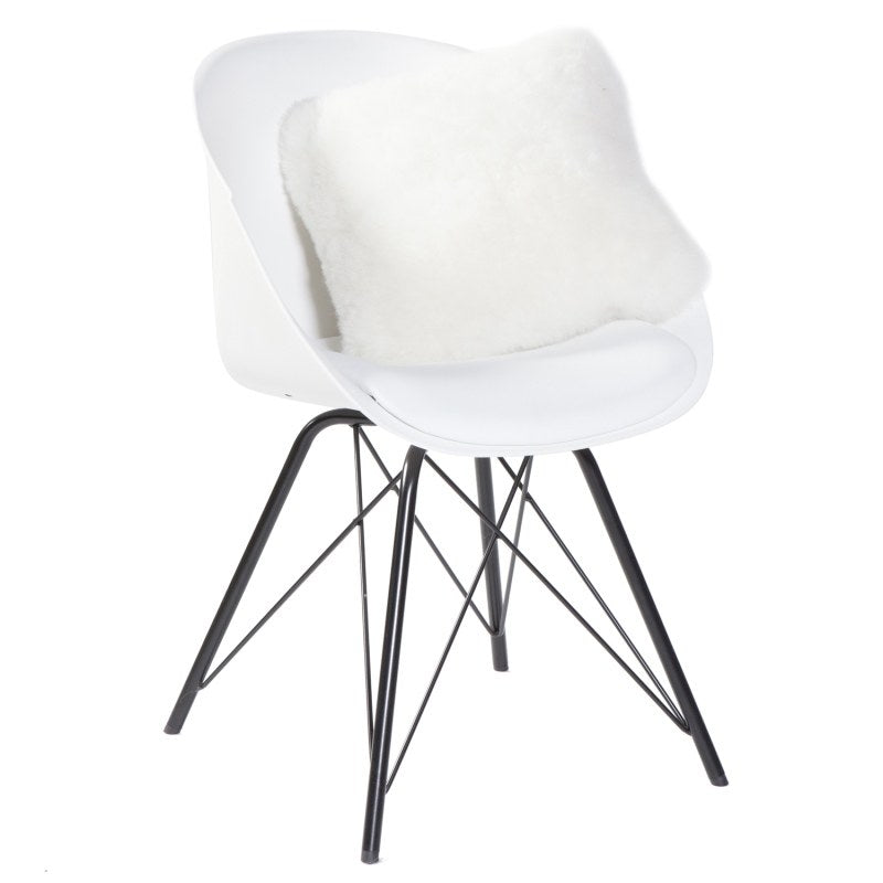Dit witte schapenvacht kussen brengt een hele nieuwe sfeer in huis.