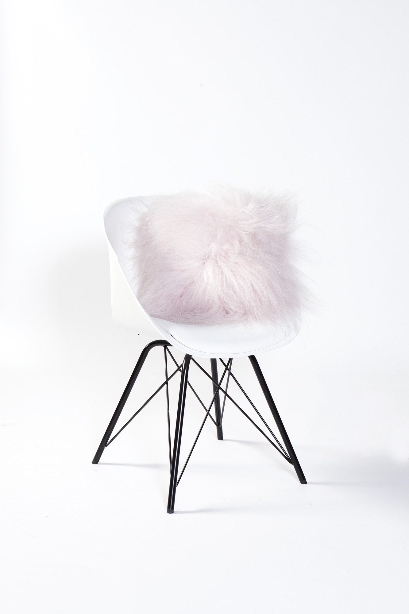 Dit lichtroze schapenvacht kussen brengt een hele nieuwe sfeer in huis. De vacht is ecologisch geverfd.