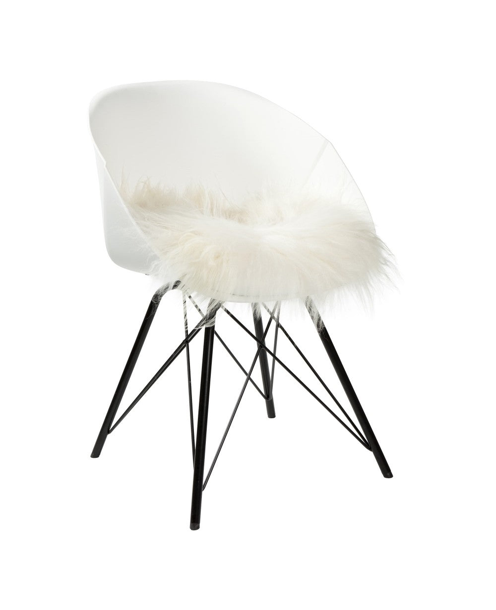 Dit witte schapenvacht stoelkussen brengt een hele nieuwe sfeer in huis.