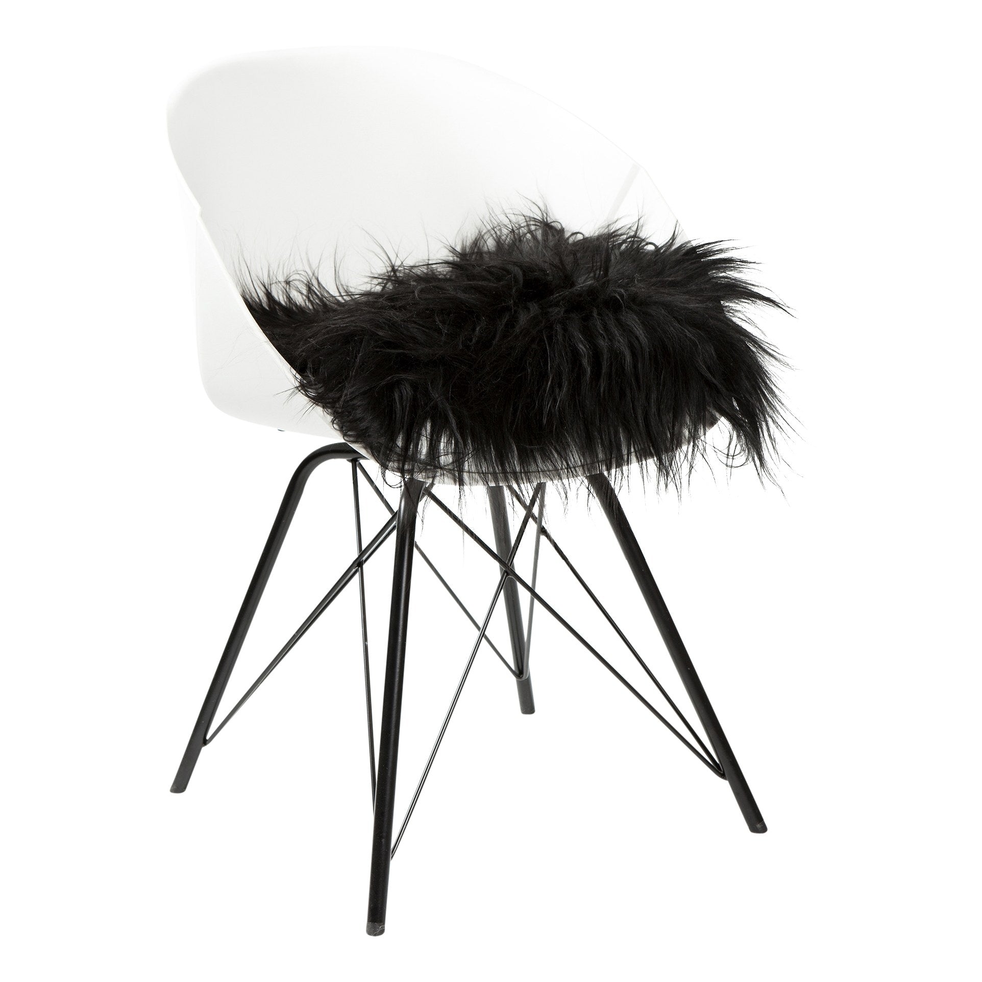 Dit zwarte schapenvacht stoelkussen brengt een hele nieuwe sfeer in huis. De vacht is ecologisch geverfd.