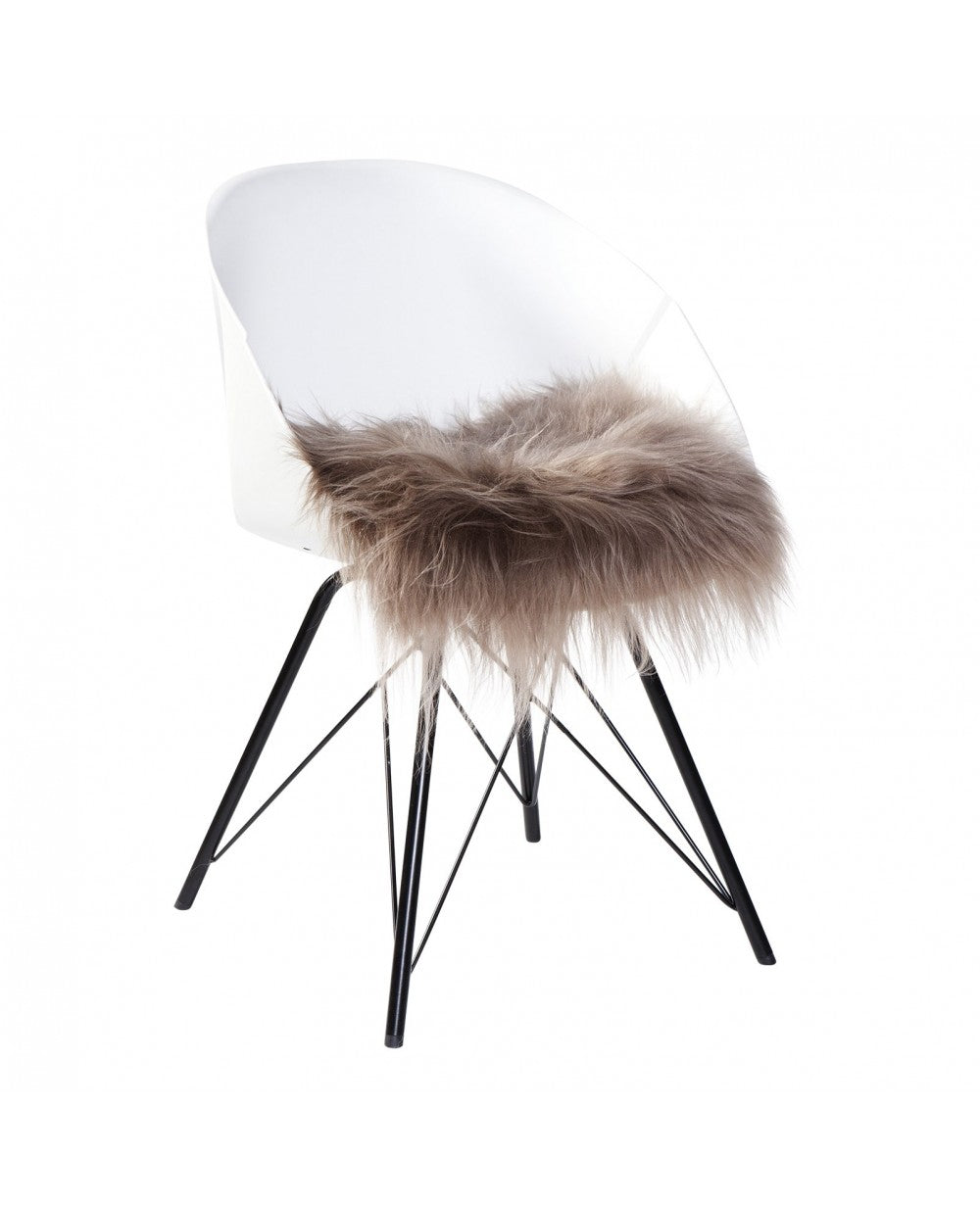 Dit taupe schapenvacht stoelkussen brengt een hele nieuwe sfeer in huis. De vacht is ecologisch geverfd.