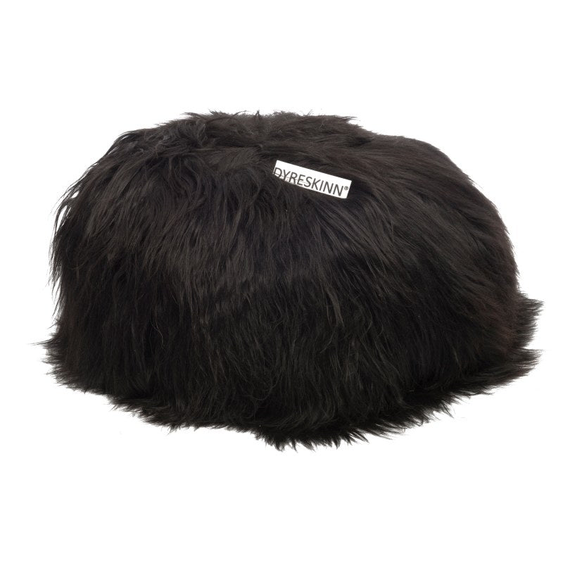 Poef schapenvacht IJslands | Natural zwart, rond | Ø60 x 40cm