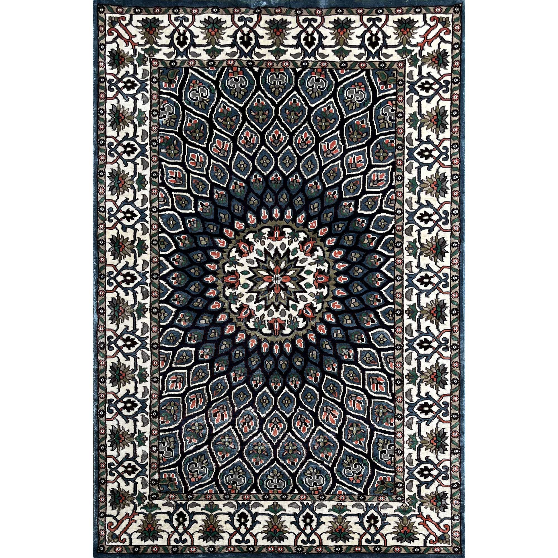 4×6 Feet Hand Knotted Silk Blue Carpet Gumbad