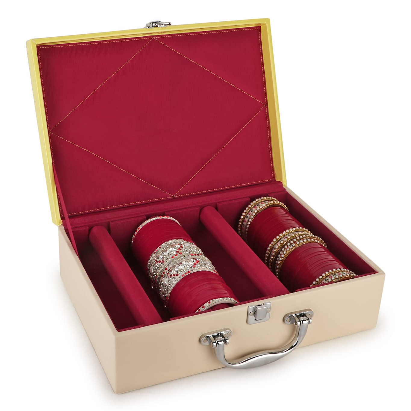 This Premium Bangle box gives a Premium and unique feeling while holding all your precious essentials in one place. Made from PU leather and MDF, the inside of the box is lined with velvet to keep your all Bangles safe.
