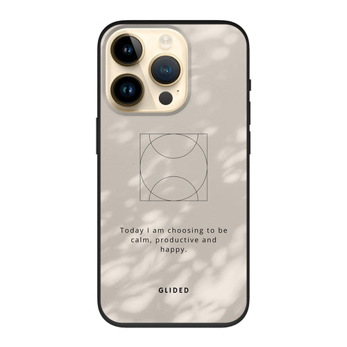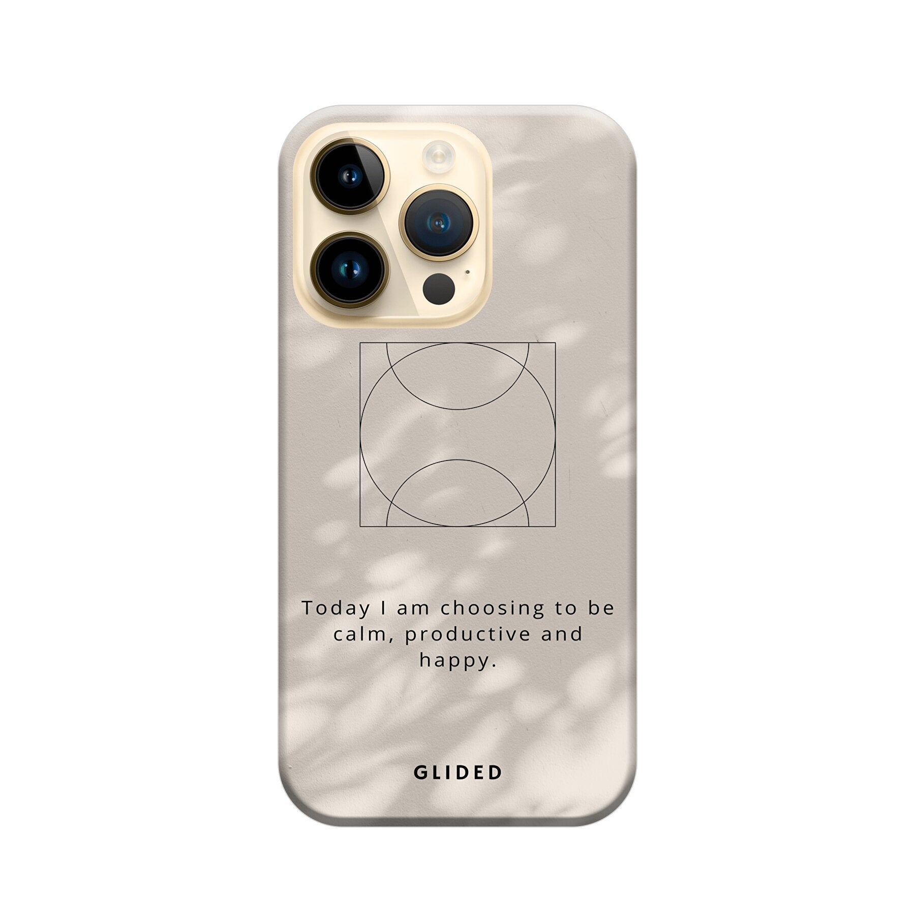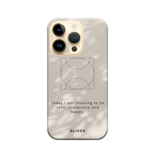 Tauche ein in die beruhigende Atmosphäre mit unserer "Affirmation" Handyhülle! Diese Hülle präsentiert den inspirierenden Spruch "Today I am choosing to be calm, productive, and happy" auf einem ästhetischen Hintergrund. Sie dient nicht nur als Schutz für dein iPhone 14 Pro, sondern auch als tägliche Erinnerung, eine positive Einstellung zu wählen.