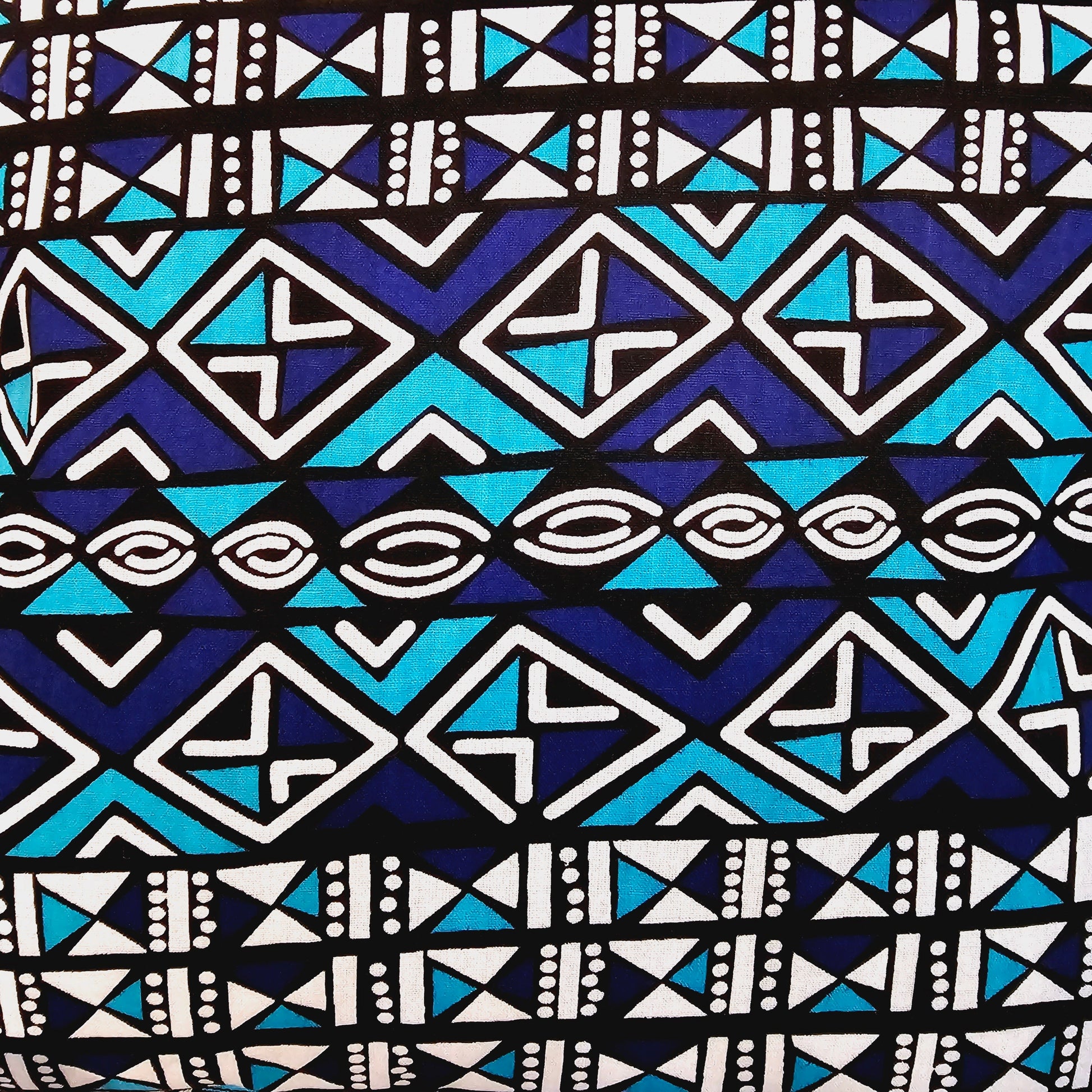This cushion is made with vibrant African wax print cotton on the front, extra thick unbleached cotton twill on the back to create a sturdy and durable cushion, and silky piping to bring out the beautiful colours in the print to create a bold statement cushion.