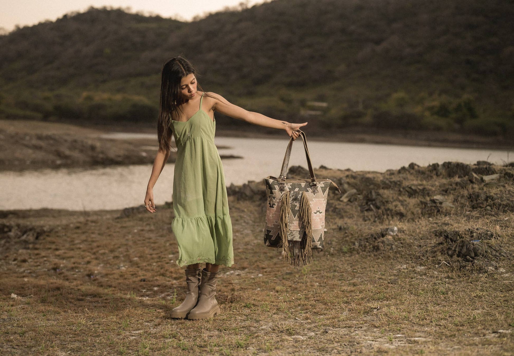• Product Type- Tote Bag • Size (HXWXD) – 15X16.5X4 H-24" • Closure- Zipper • Material – Cotton Rug Rug, Upcycled Canvas and Leather • Compartments – 2 Inner Pocket & 1 Outer Pocket • Product Code – 4409146599960 • Made In India