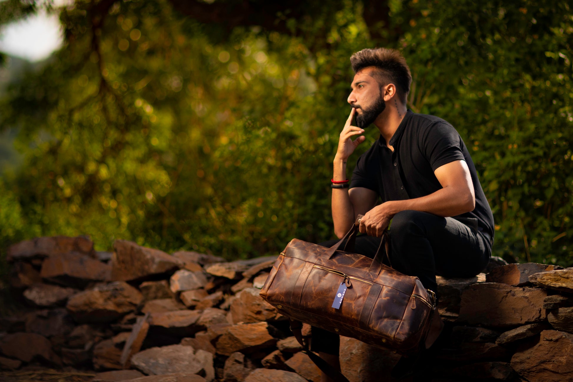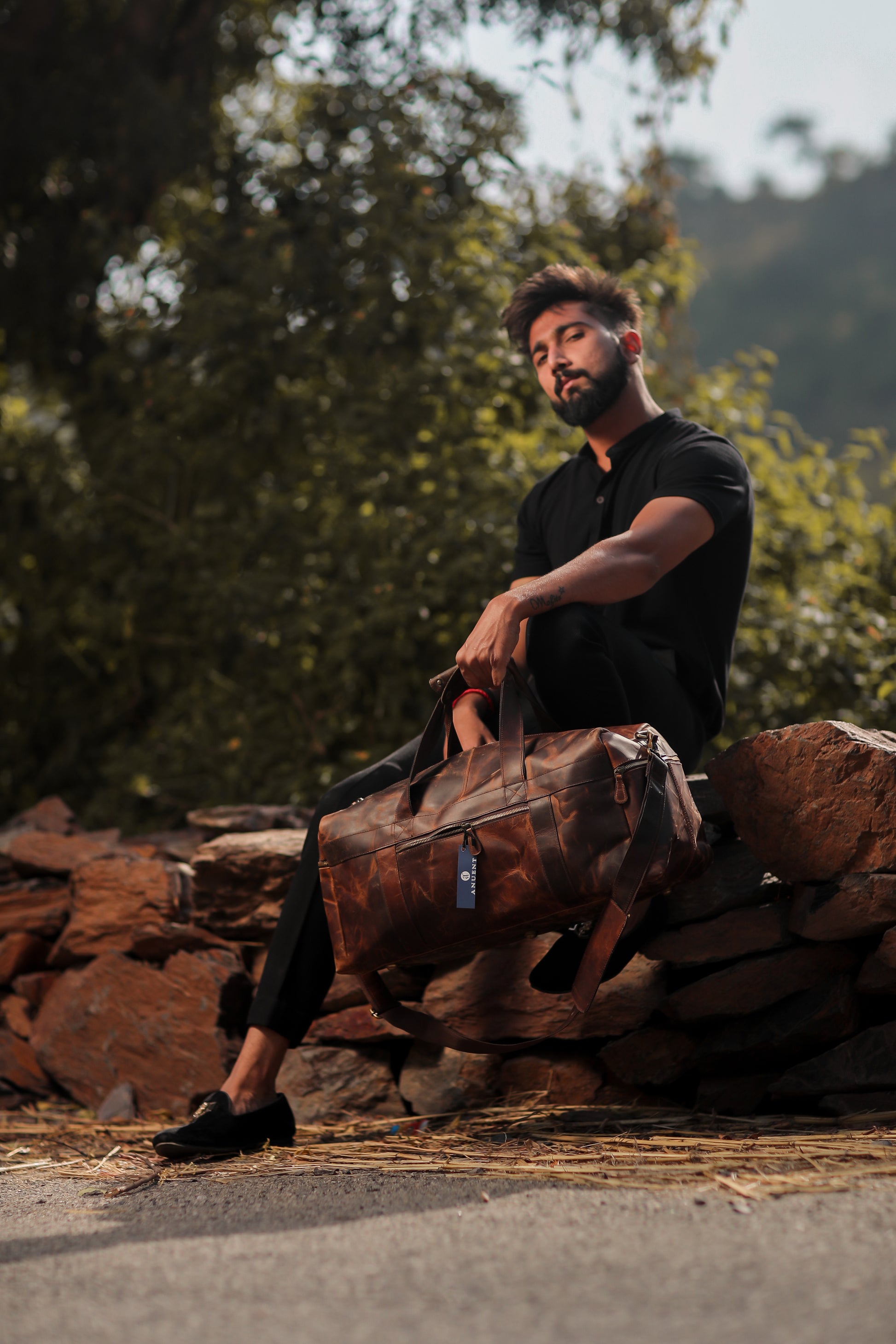 ANUENT Handmade Buffalo Leather Duffle Bag For Unisex.