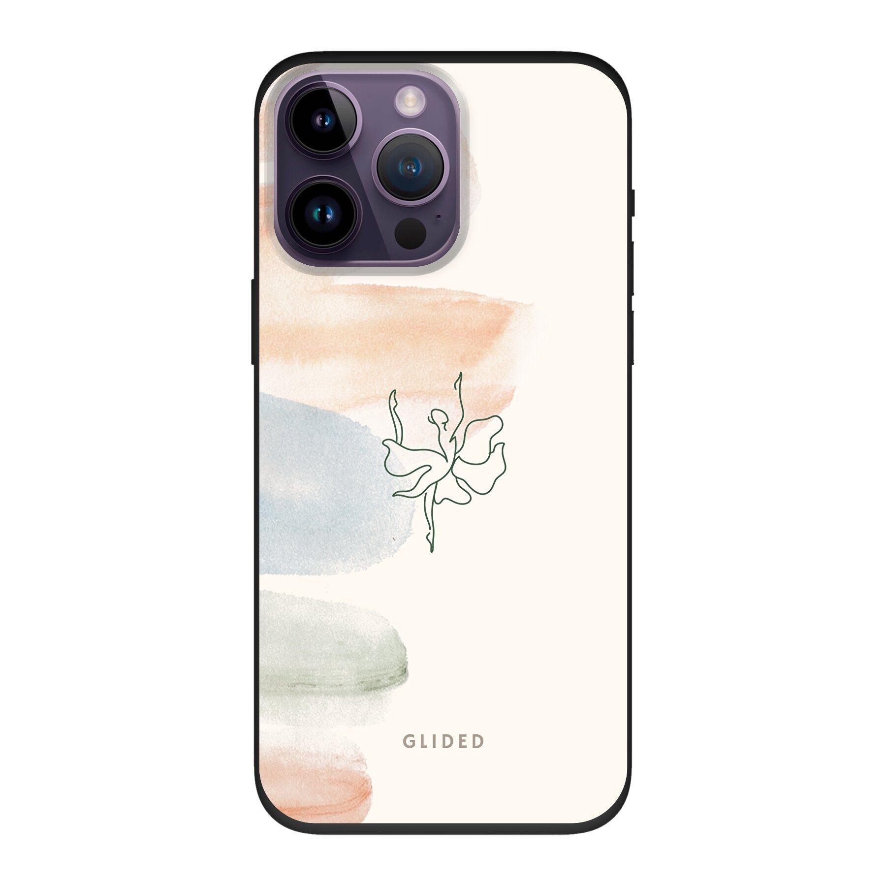 🩰 Erlebe die anmutige Welt der Ästhetik auf deinem iPhone 14 Pro Max! Unsere "Aquarelle"-Design Handyhülle präsentiert zarte Pastellfarben an den Seiten und in der Mitte eine bezaubernde Ballerina, die Eleganz und Ästhetik auf einzigartige Weise vereint.