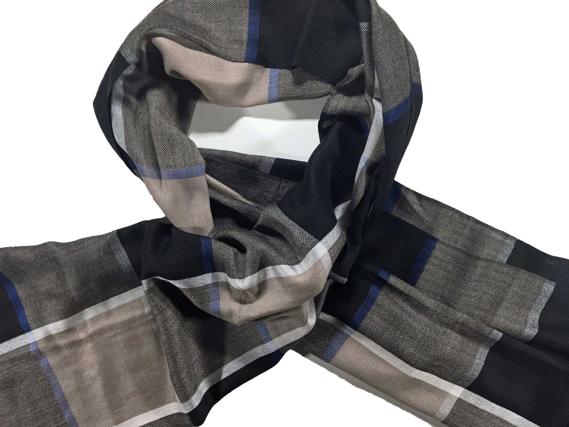 Hand-loomed suave herringbone plaid in fine wool and silk blend yarn. It’s luxuriously soft and warm. Unisex scarf. The scarf has a rich & vibrant texture, and the mélange of colors adds to the beauty of the scarf.