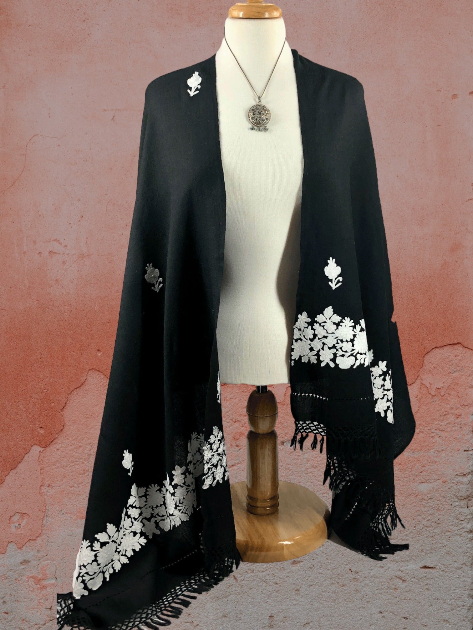 This handmade custom designed embroidered wrap has a unique and beautiful design. This gorgeous wrap is suitable for daily life, party, wedding, and traveling.