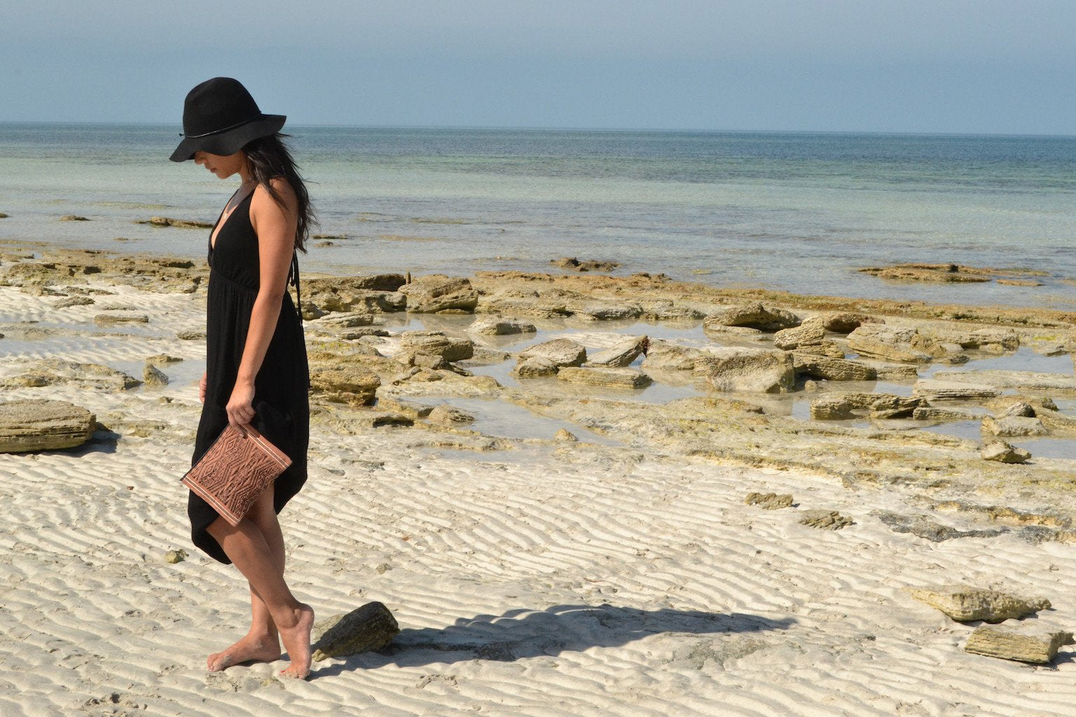 The Sierra Tribal clutch is perfect for the beach, brunch, and everything in between! Traditional techniques and patterns are used to create these trendy, modern bags. It is completely handwoven with a repeating design on front and back.