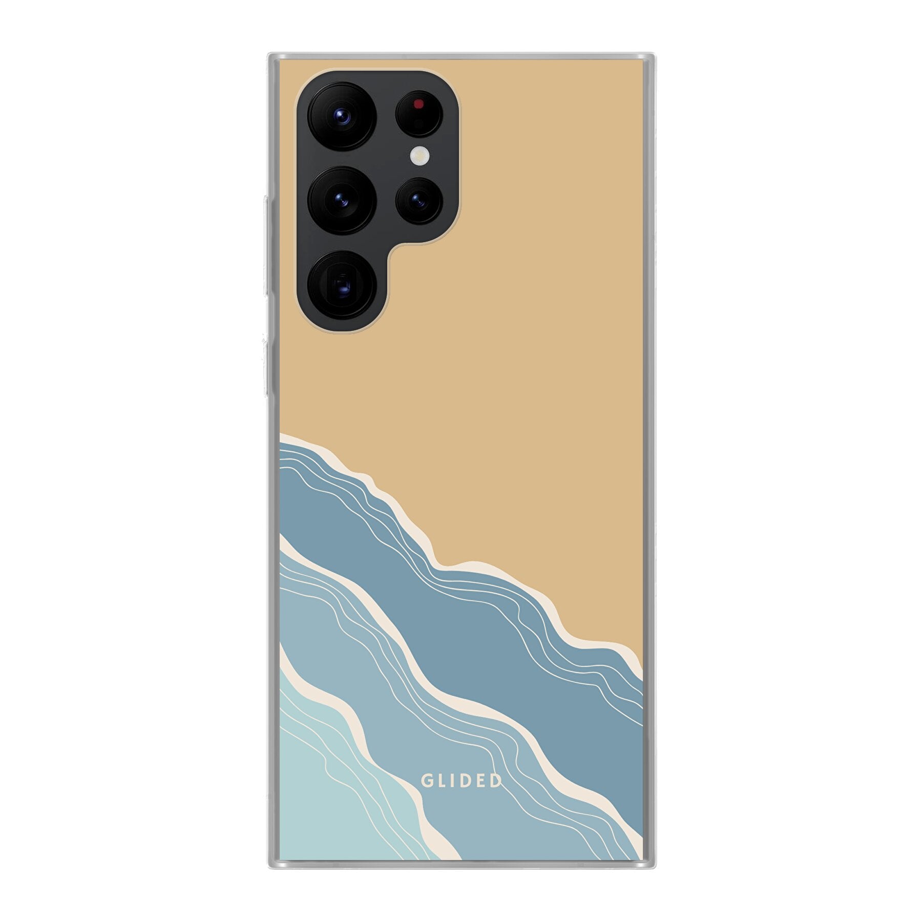 Entdecke die perfekte Ergänzung für dein Samsung Galaxy S22 Ultra! Unsere 'Breeze'-Design Hülle bietet nicht nur einen erstklassigen Schutz für dein geliebtes Gerät, sondern entführt dich auch direkt an einen traumhaften Sandstrand mit einem Hauch von Meer.