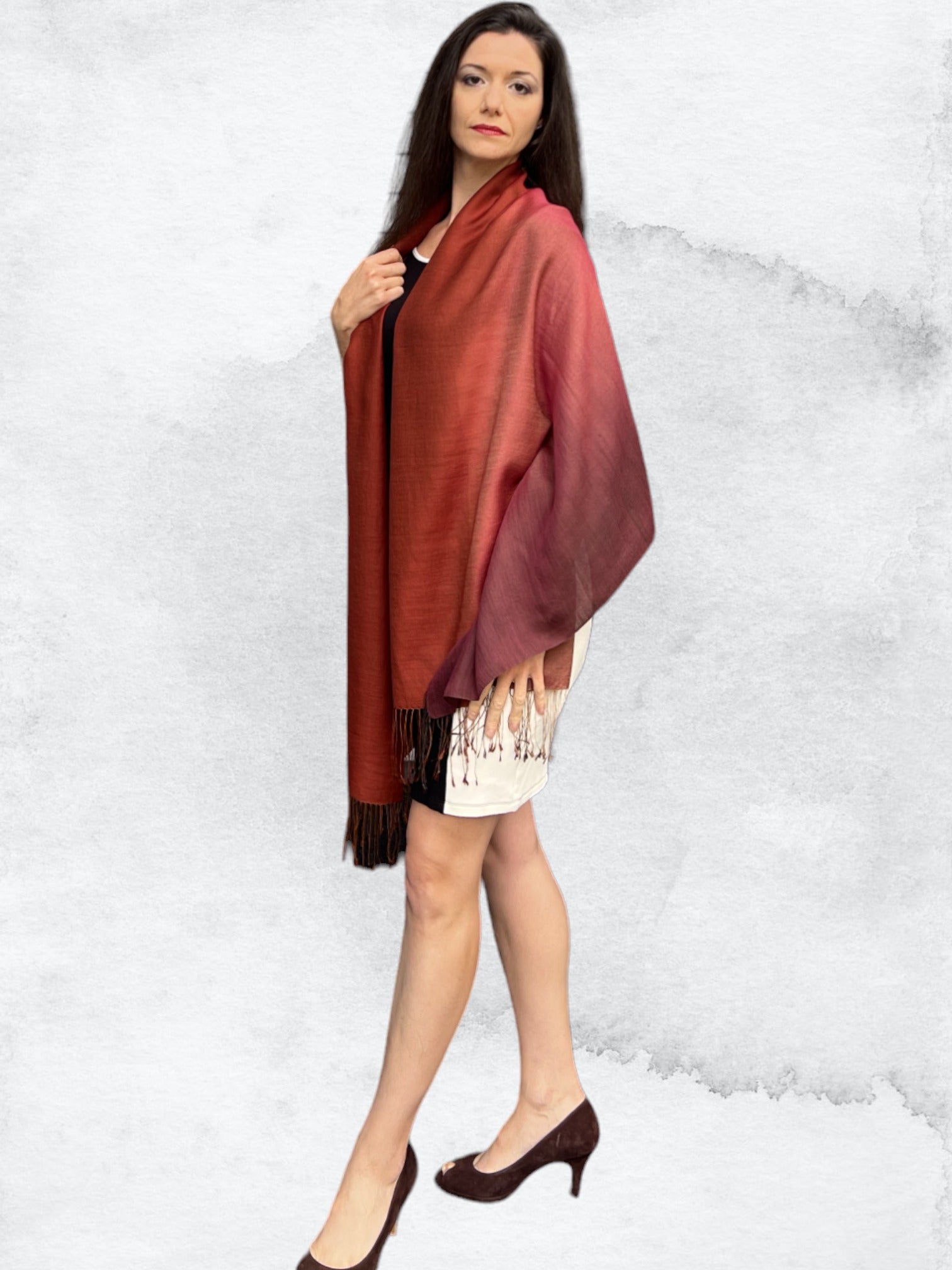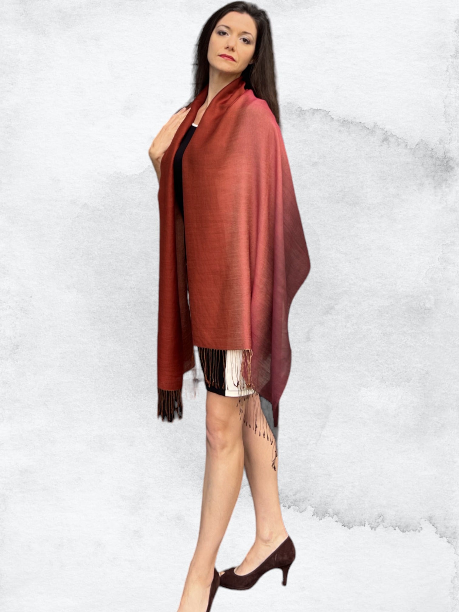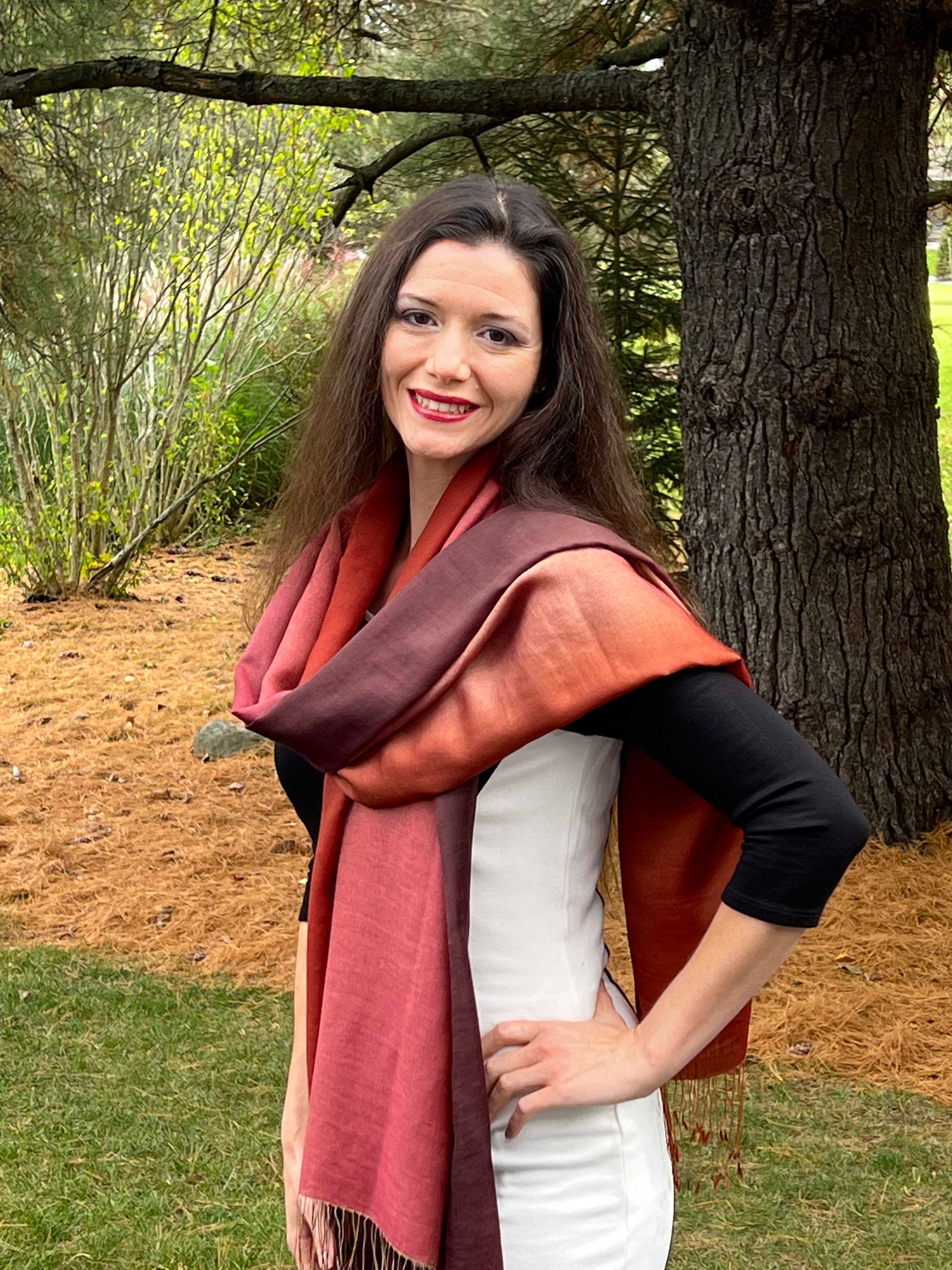 The fabric has been hand-loomed in a blend of silk and finest wool. These scarves are warm, breathable, and super soft. These Scarves have been hand dyed in six gorgeous shades of complementary color.
