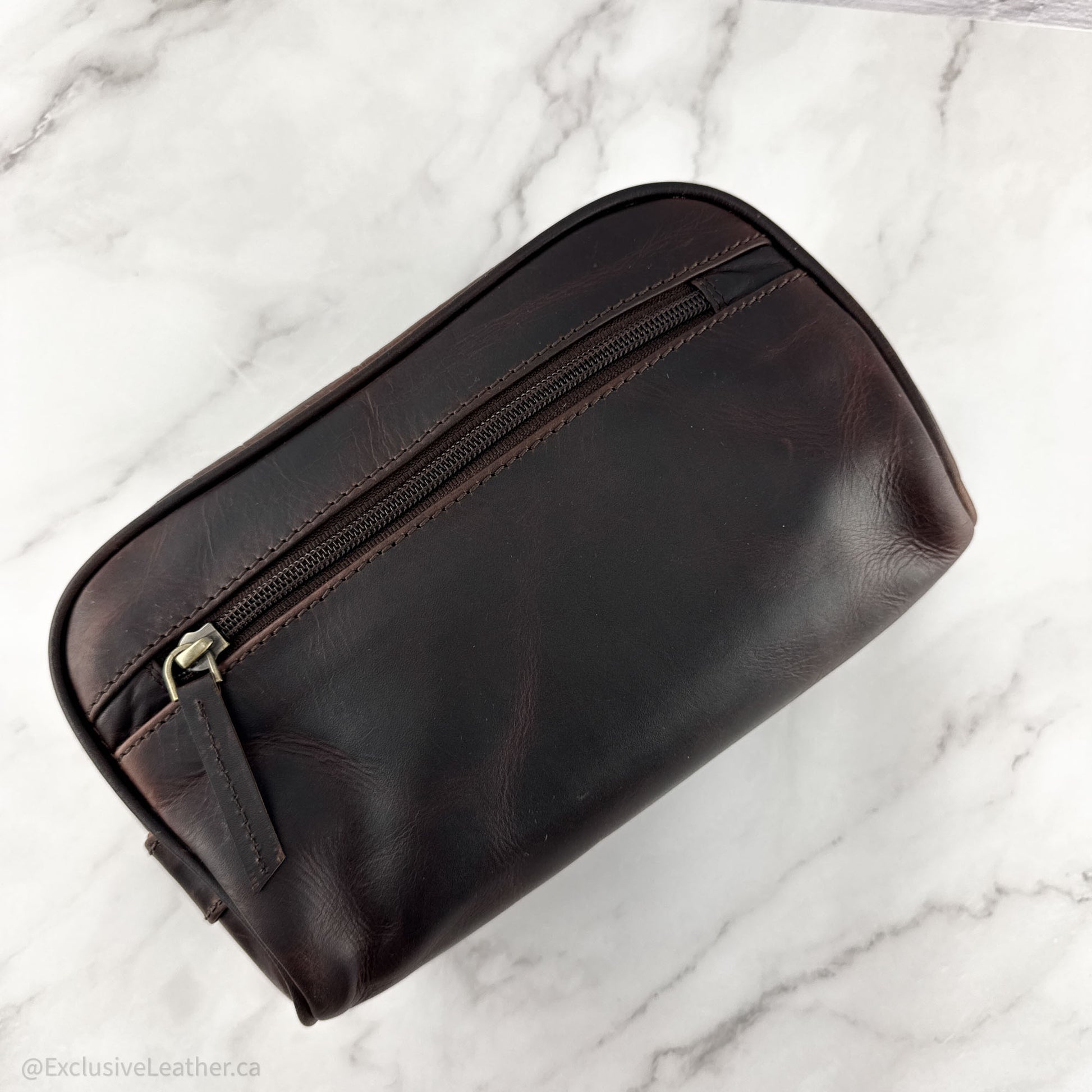 Introducing our Buff Leather Unisex Dopp Kit, a stylish and practical solution for all your toiletry needs. This exquisite leather toiletry bag comes in three distinct colors, allowing you to choose the one that best suits your personal style. Crafted from high-quality buff leather, each bag boasts a luxurious feel and durability that ensures it will withstand the rigors of travel. The spacious interior is designed to accommodate all your essentials, from grooming products to cosmetics, while the sleek design makes it easy to pack in your suitcase or carry on its own. Whether you're heading out for a weekend getaway or a long vacation, this leather toiletry bag is the perfect companion, combining functionality with a touch of elegance. Size : 8.5 x 5 x 3.5 inches Colors: Cherry Brown Our Dopp Kits feature a minimalist and classic design. A zippered top keeps all your toiletries secure and the open interior provides easy access to all your daily essentials.