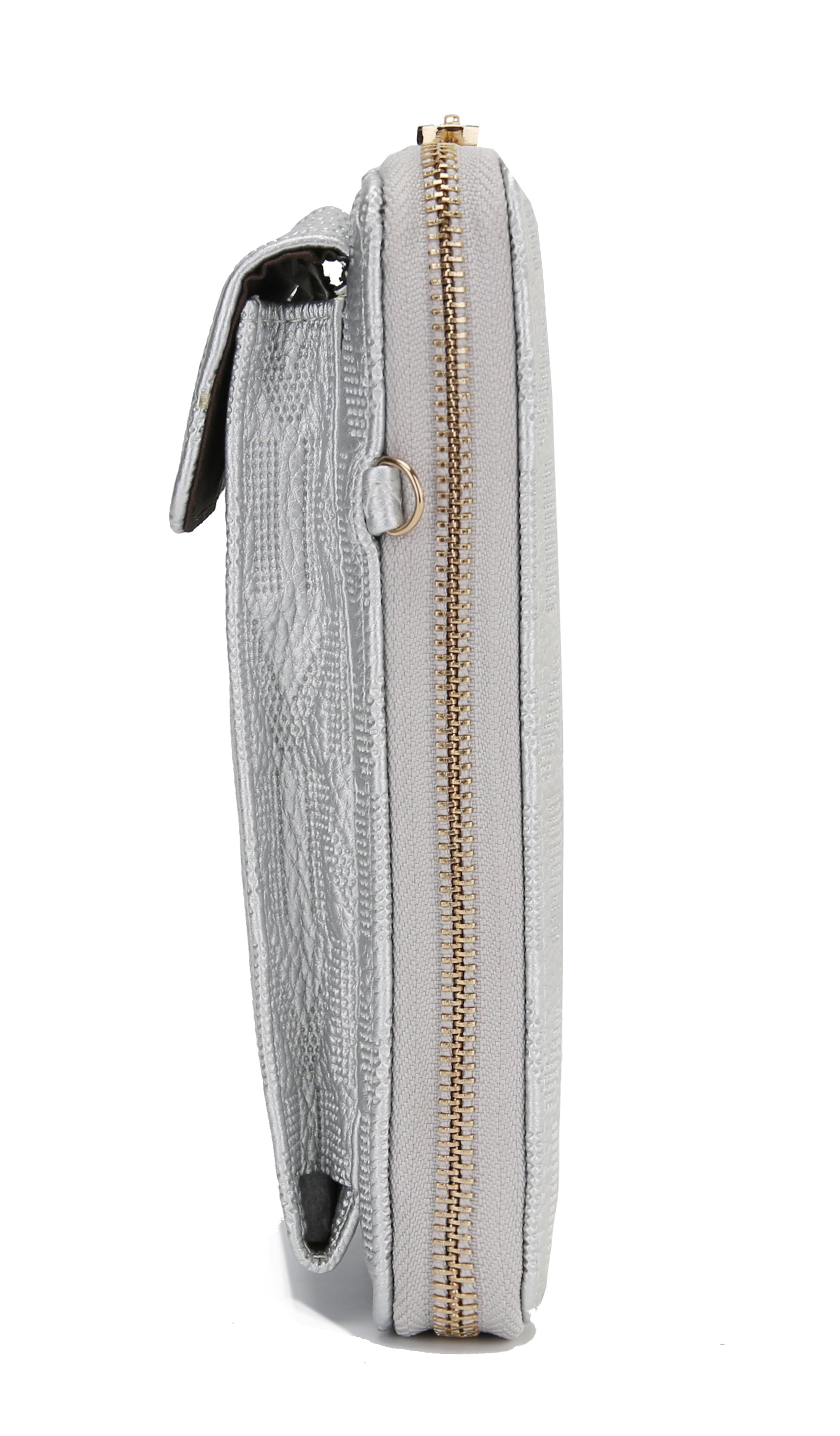 - Exterior features a magnetic snap front pocket, ideal for a phone, coins, or cards