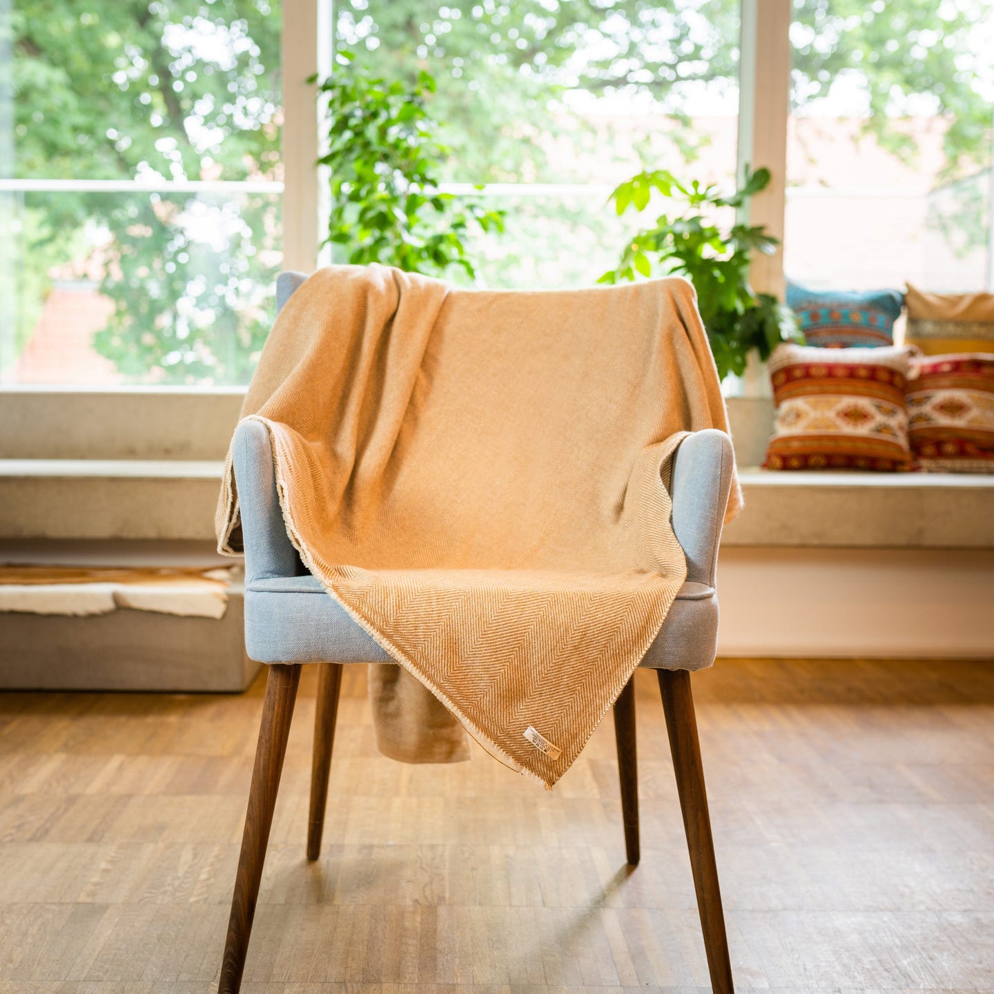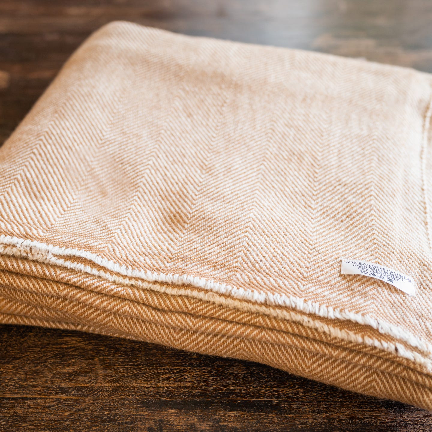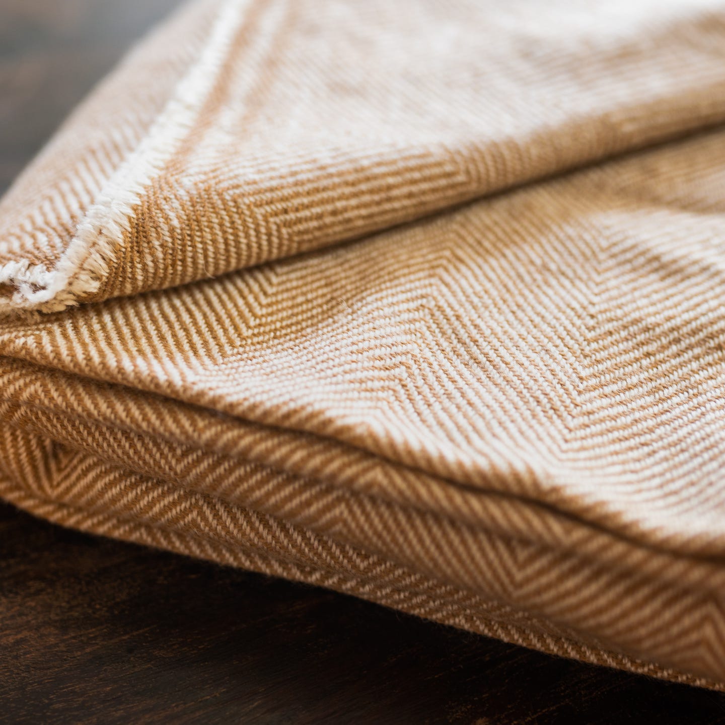 Kaschmirdecke braun mit feinem Fischgrätenmuster