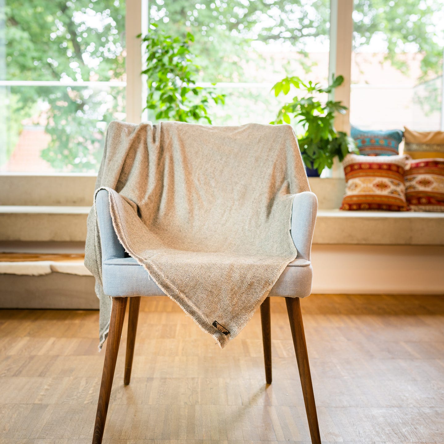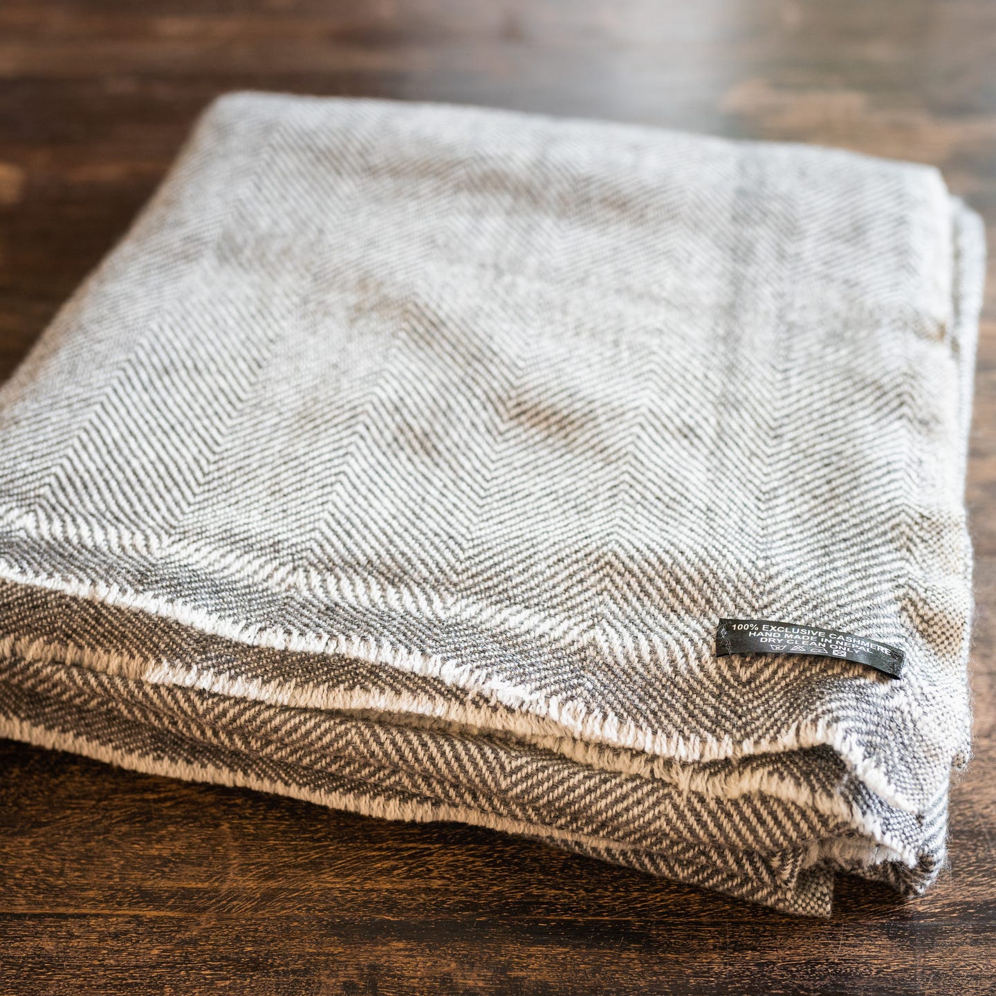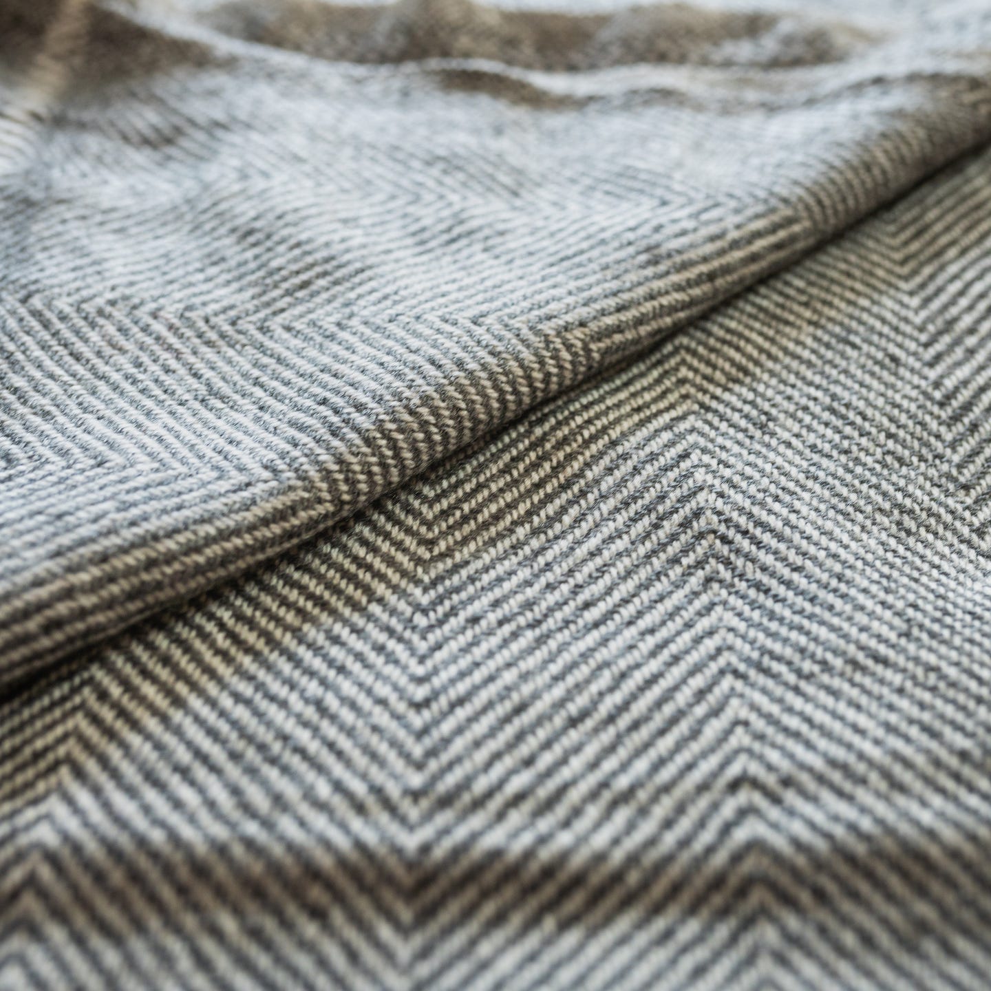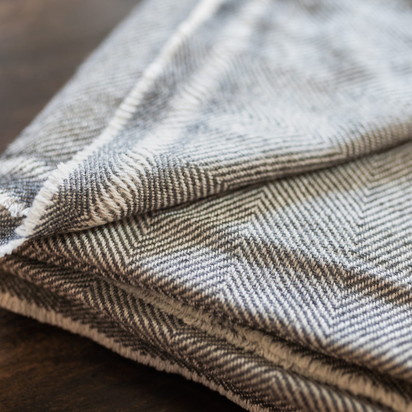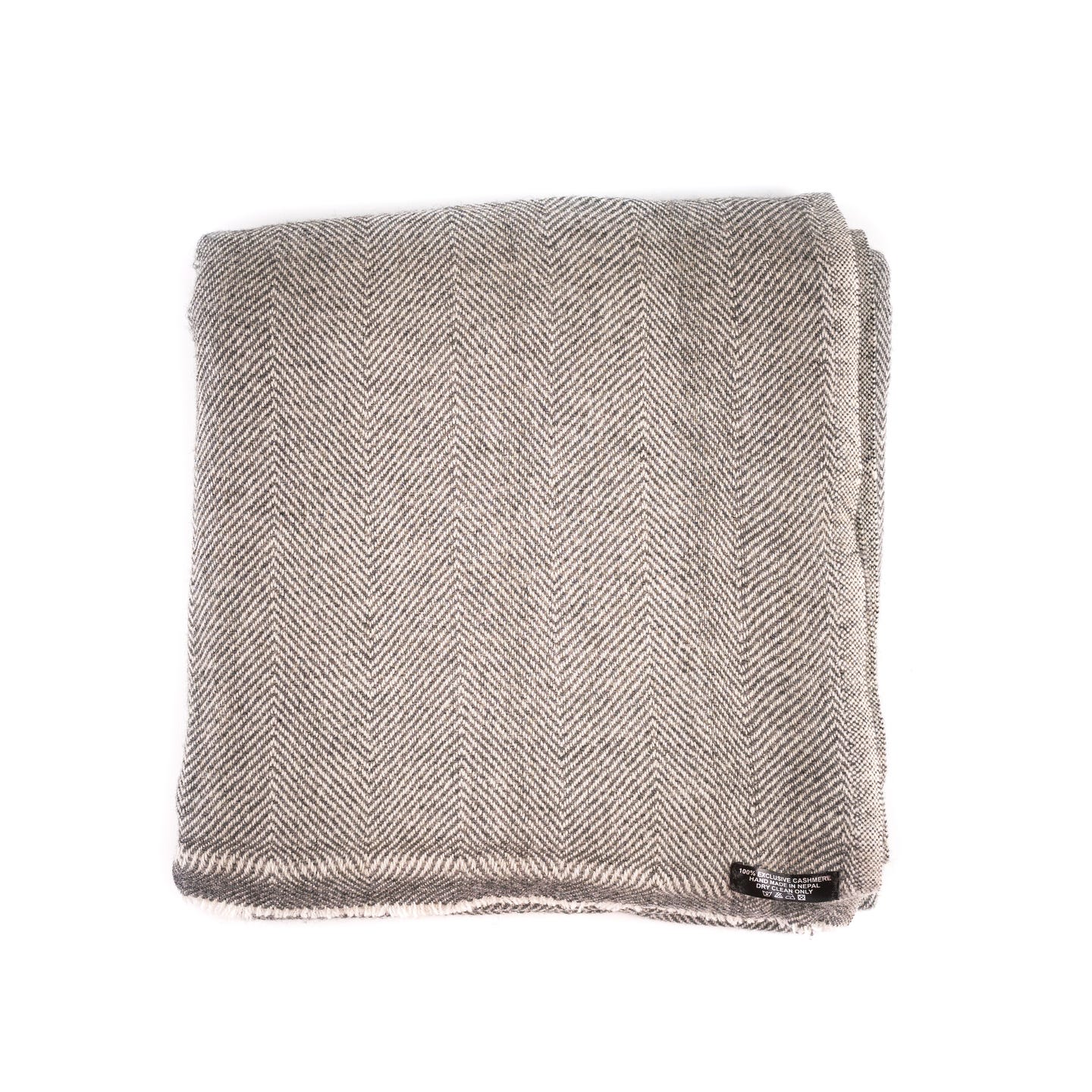 Kaschmirdecke grau mit feinem Fischgrätenmuster