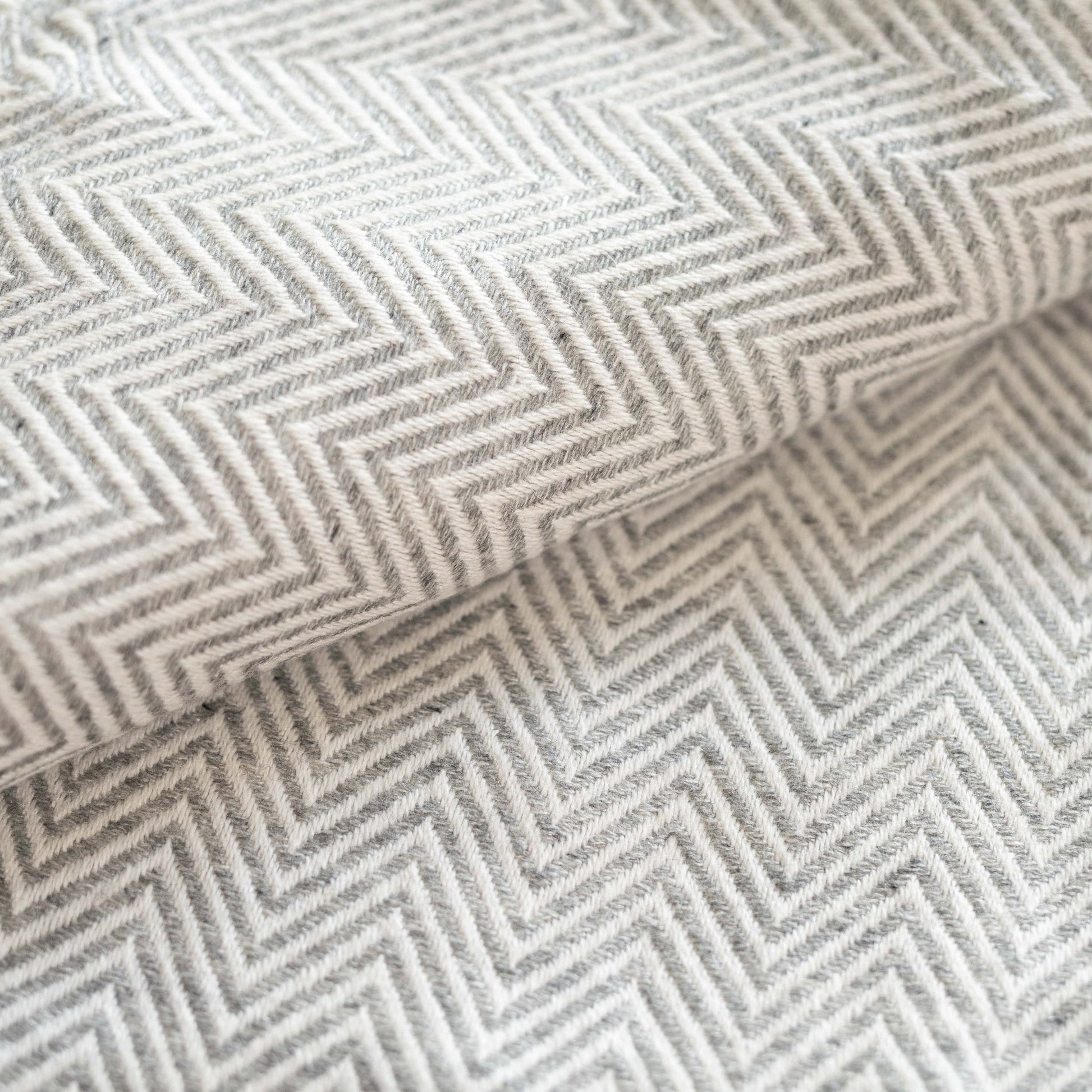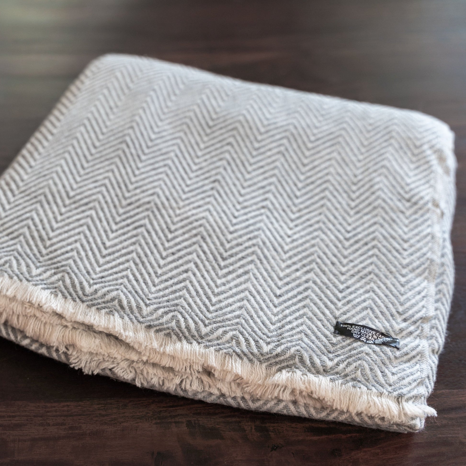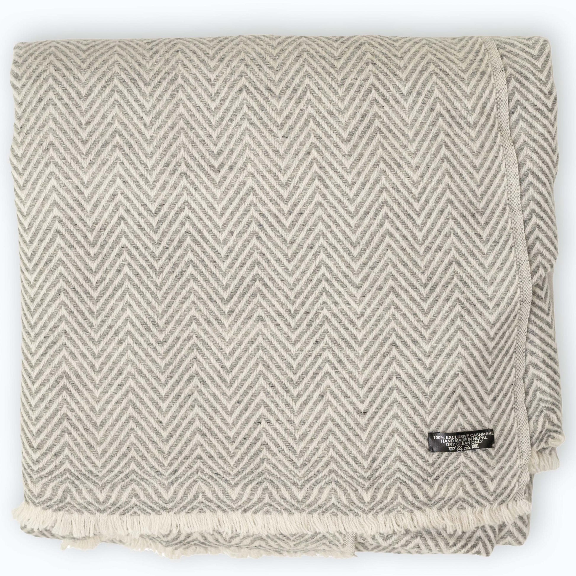 Kaschmirdecke grau mit großem Fischgrätenmuster