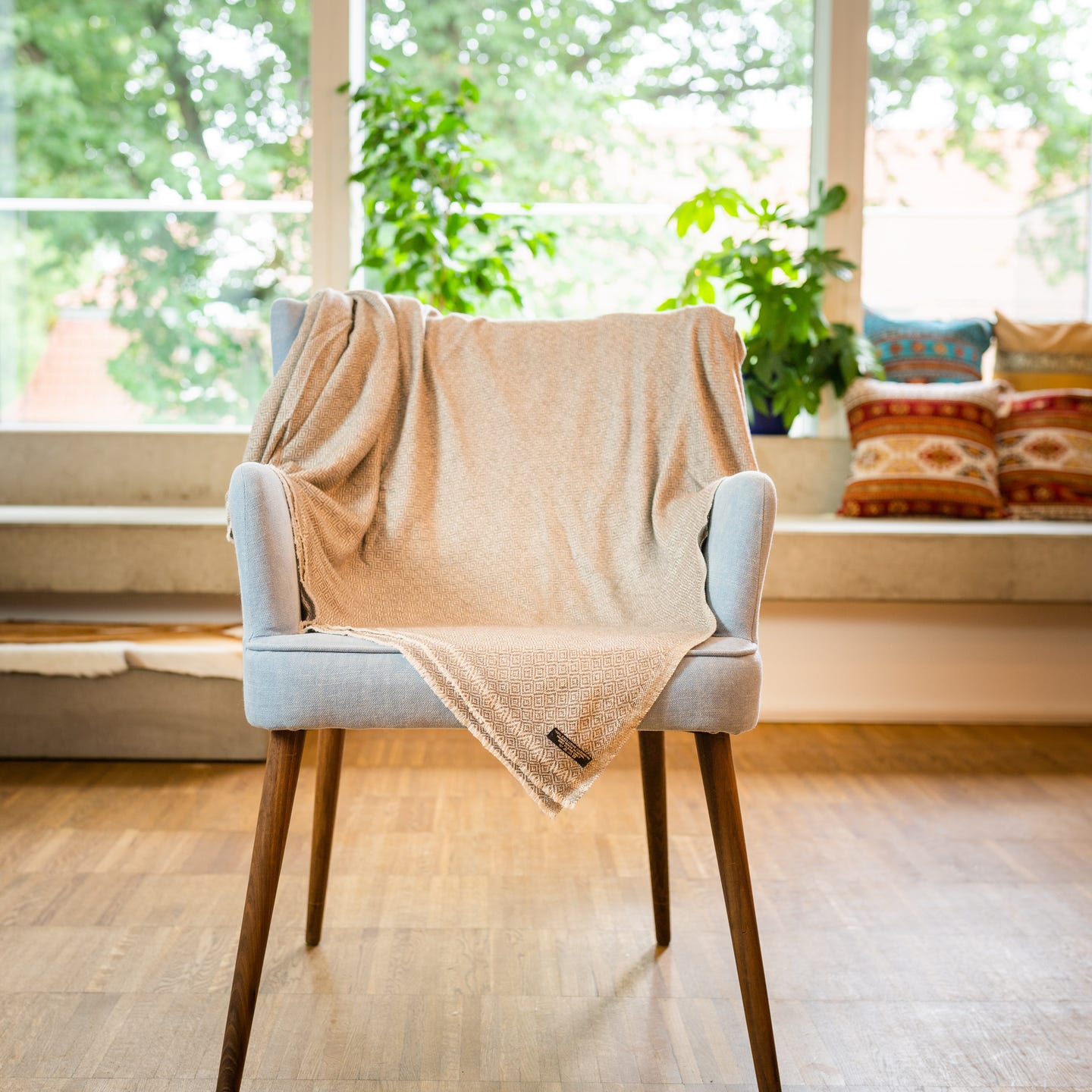 Kaschmirdecke graubraun mit Karomuster/ kariert