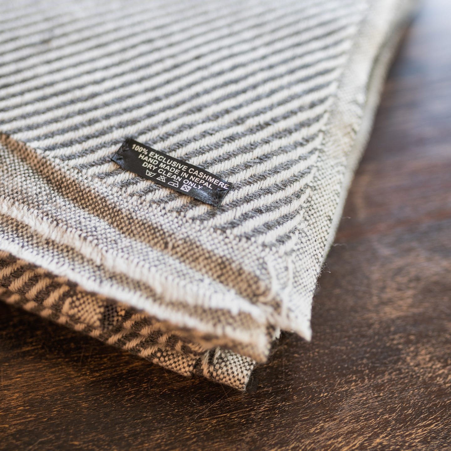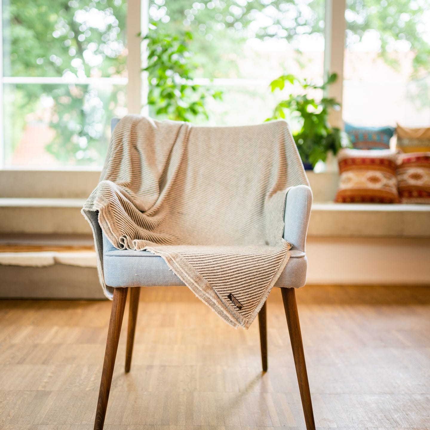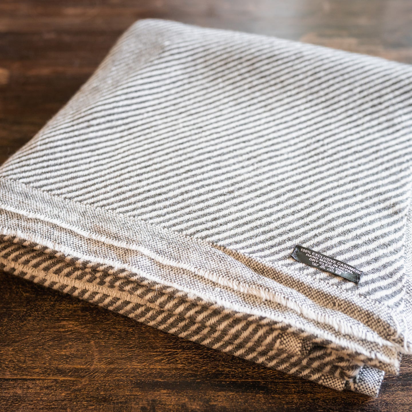 Kaschmirdecke grau mit Streifenmuster/ gestreift