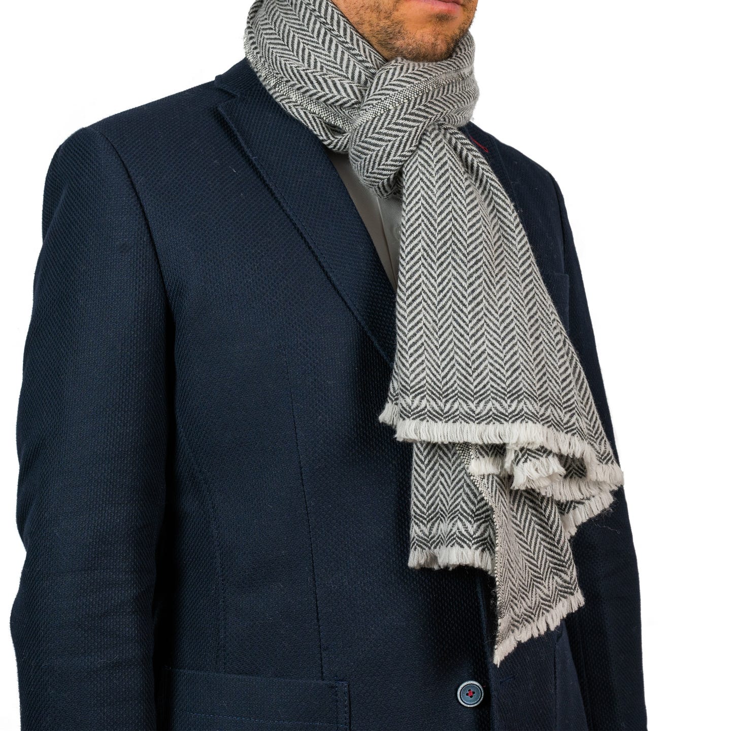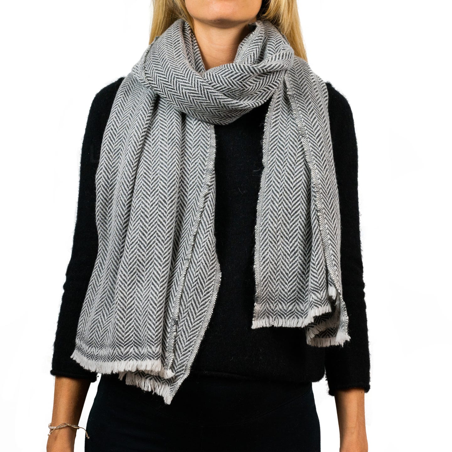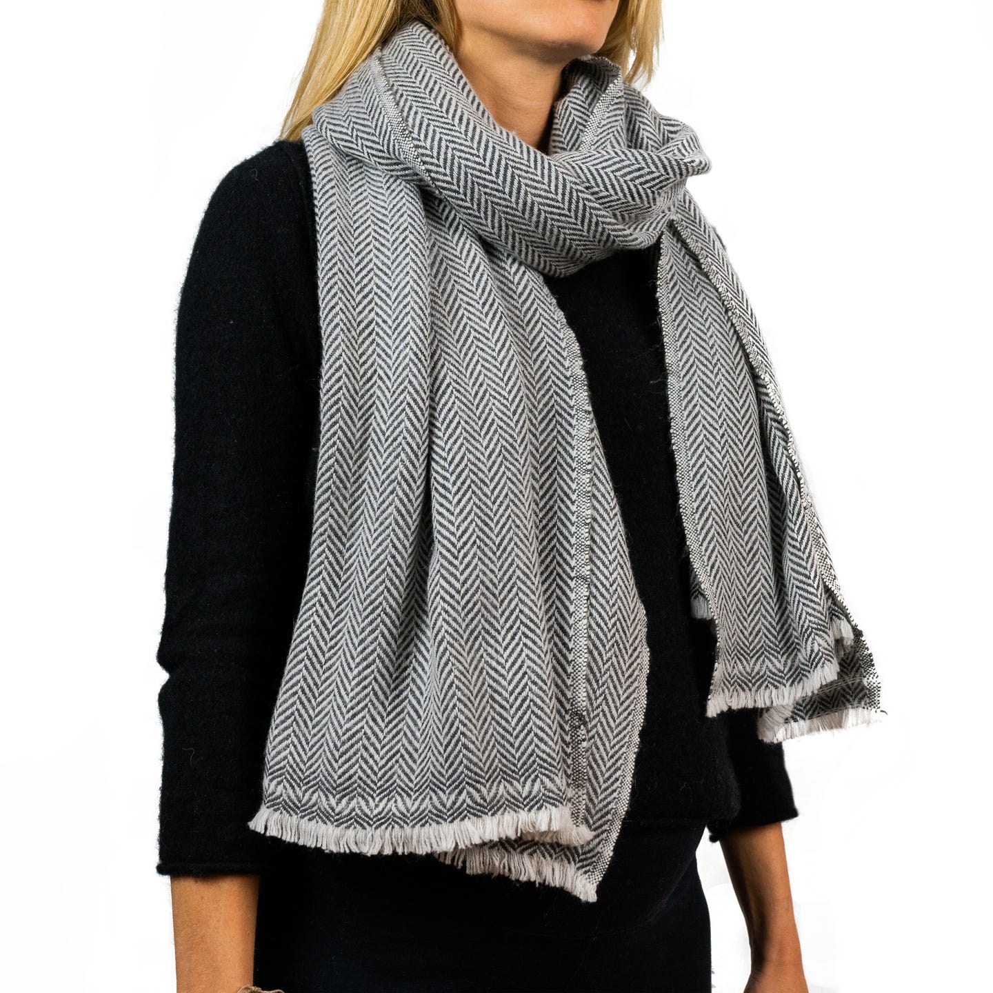 Kaschmirschal grau mit kleinem Fischgrätenmuster