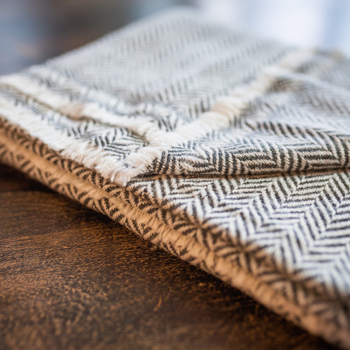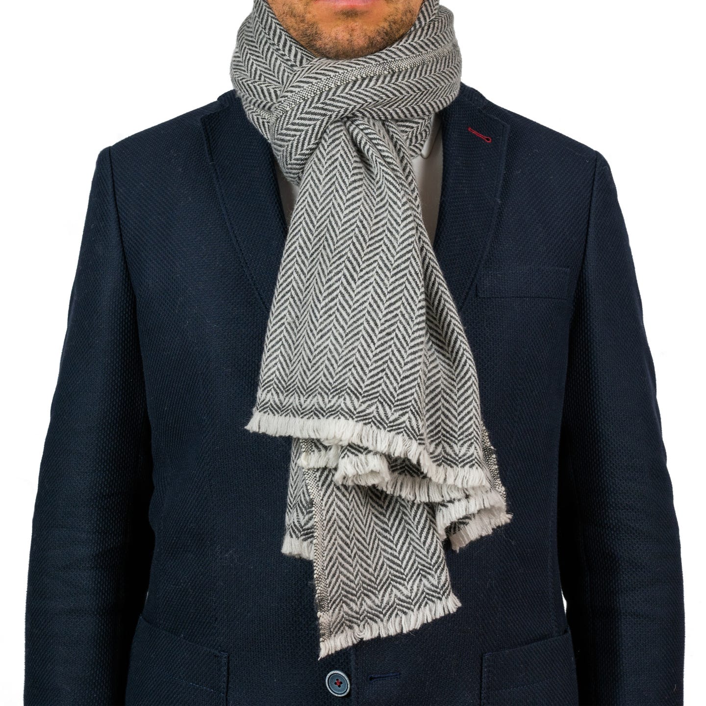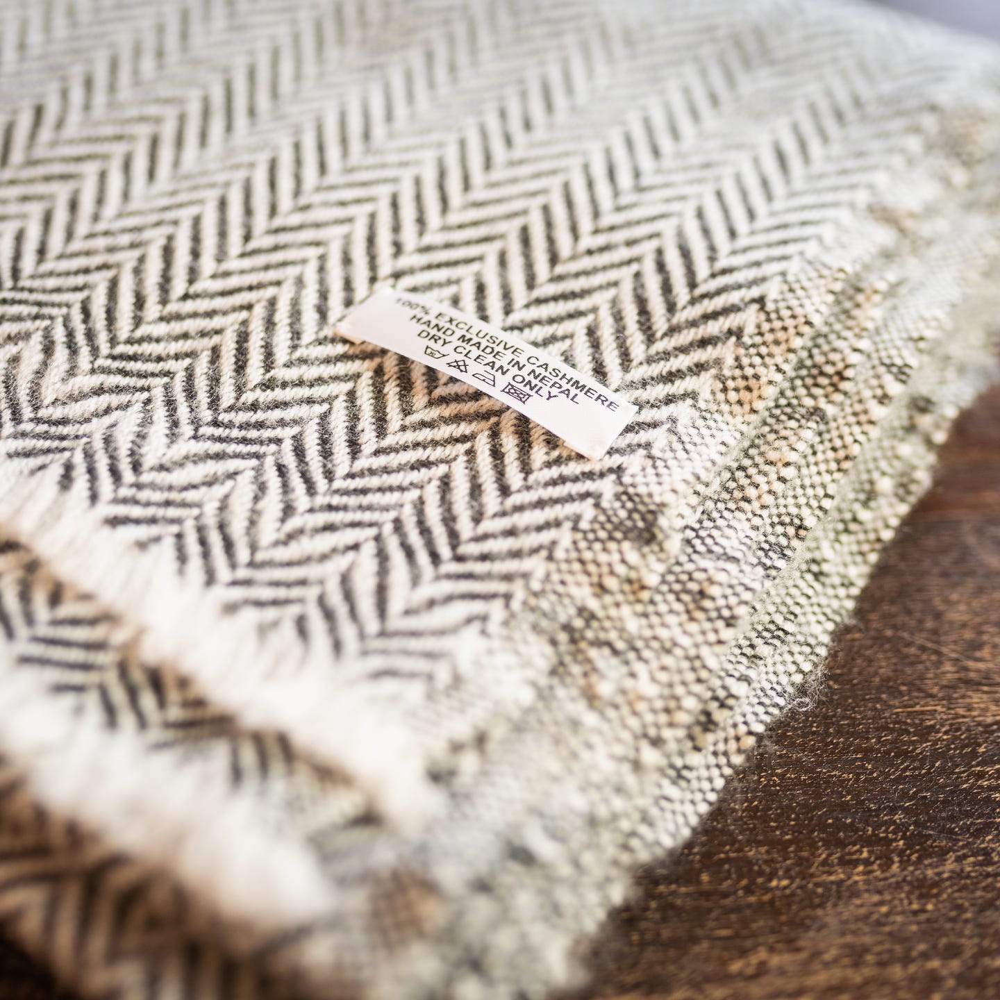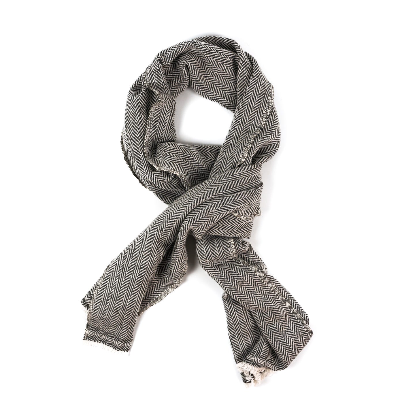 Kaschmirschal grau mit kleinem Fischgrätenmuster