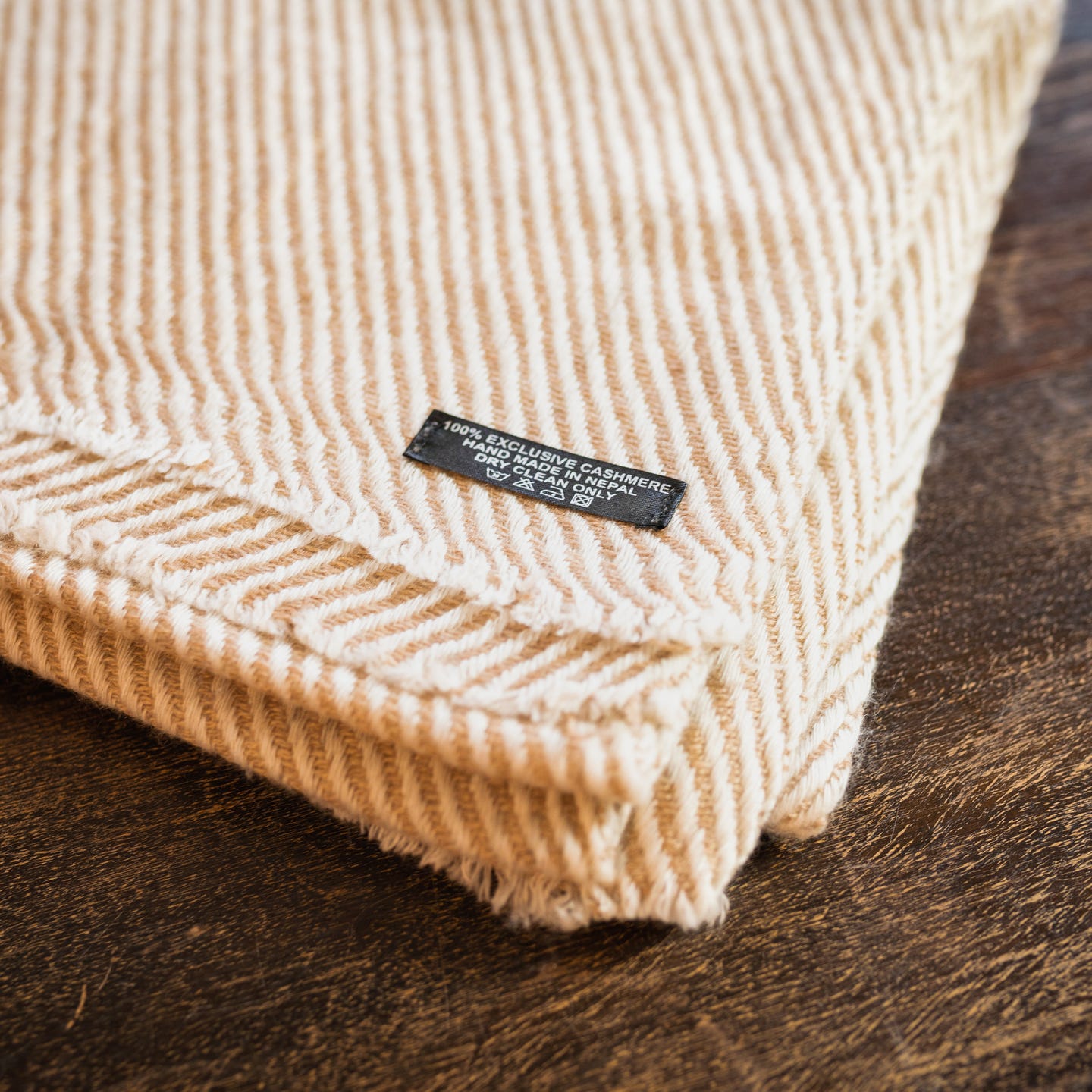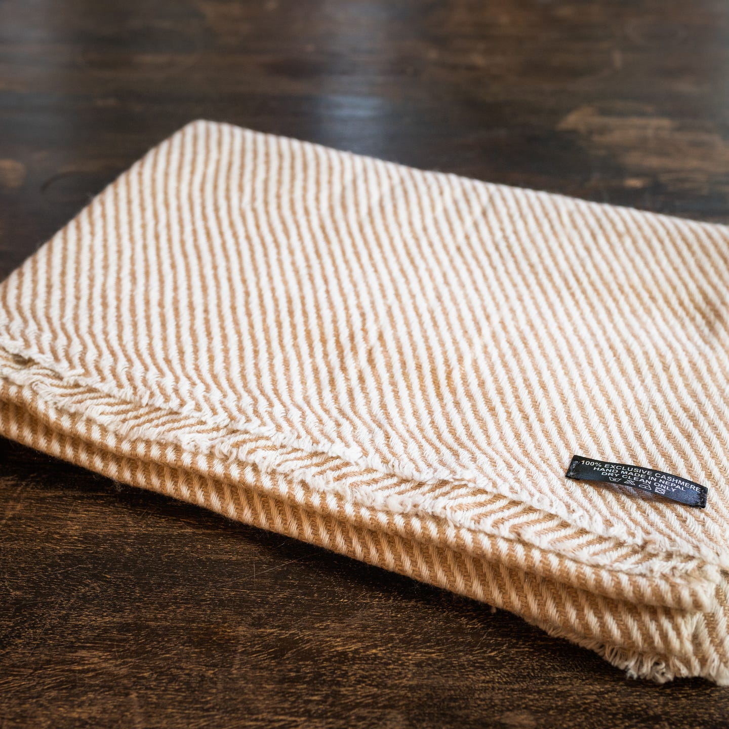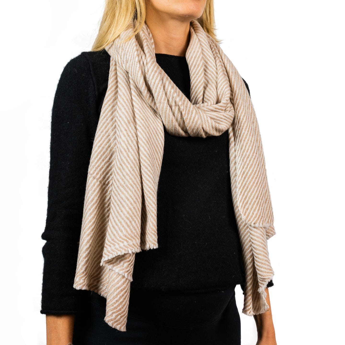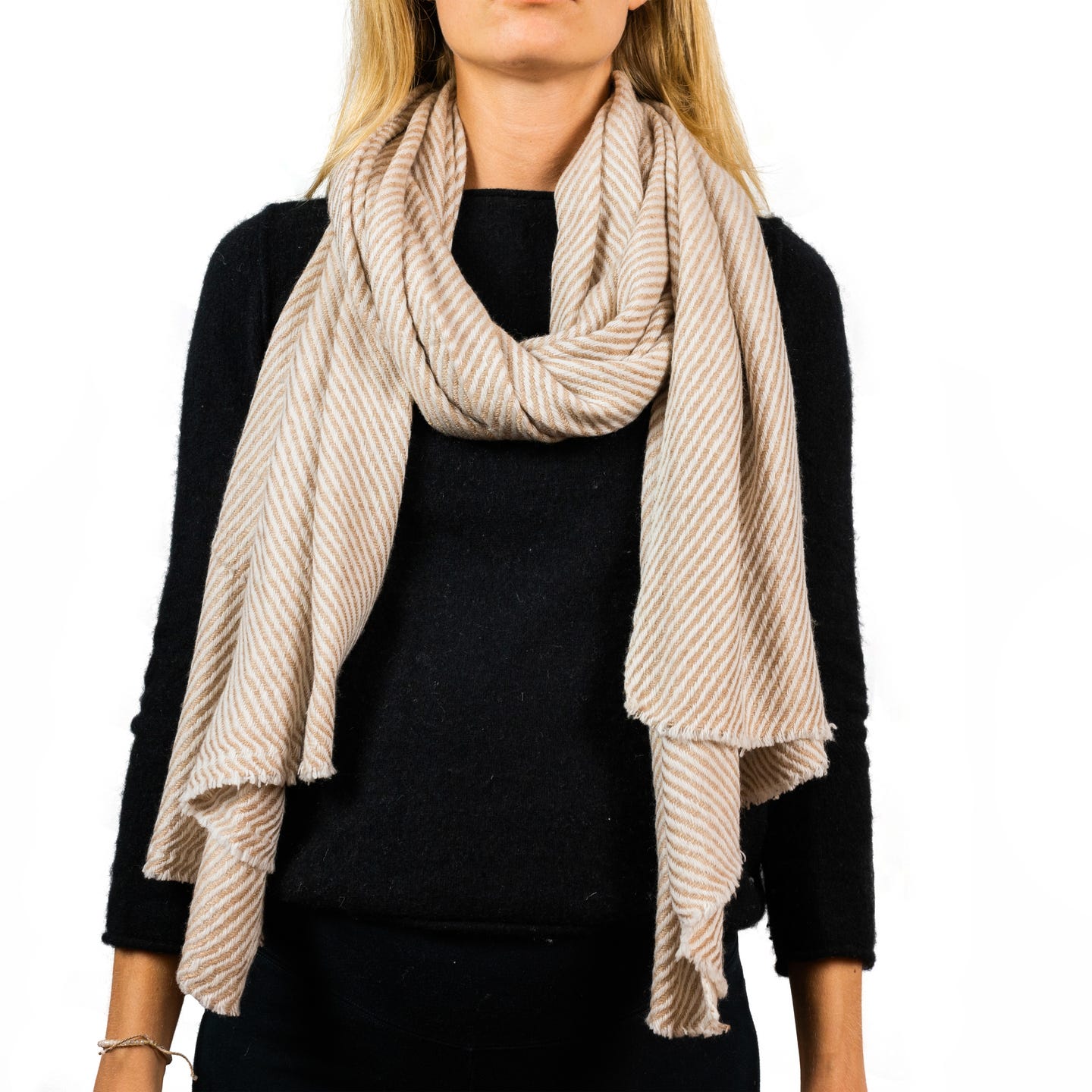 Kaschmirschal hellbraun mit Streifenmuster/ gestreift