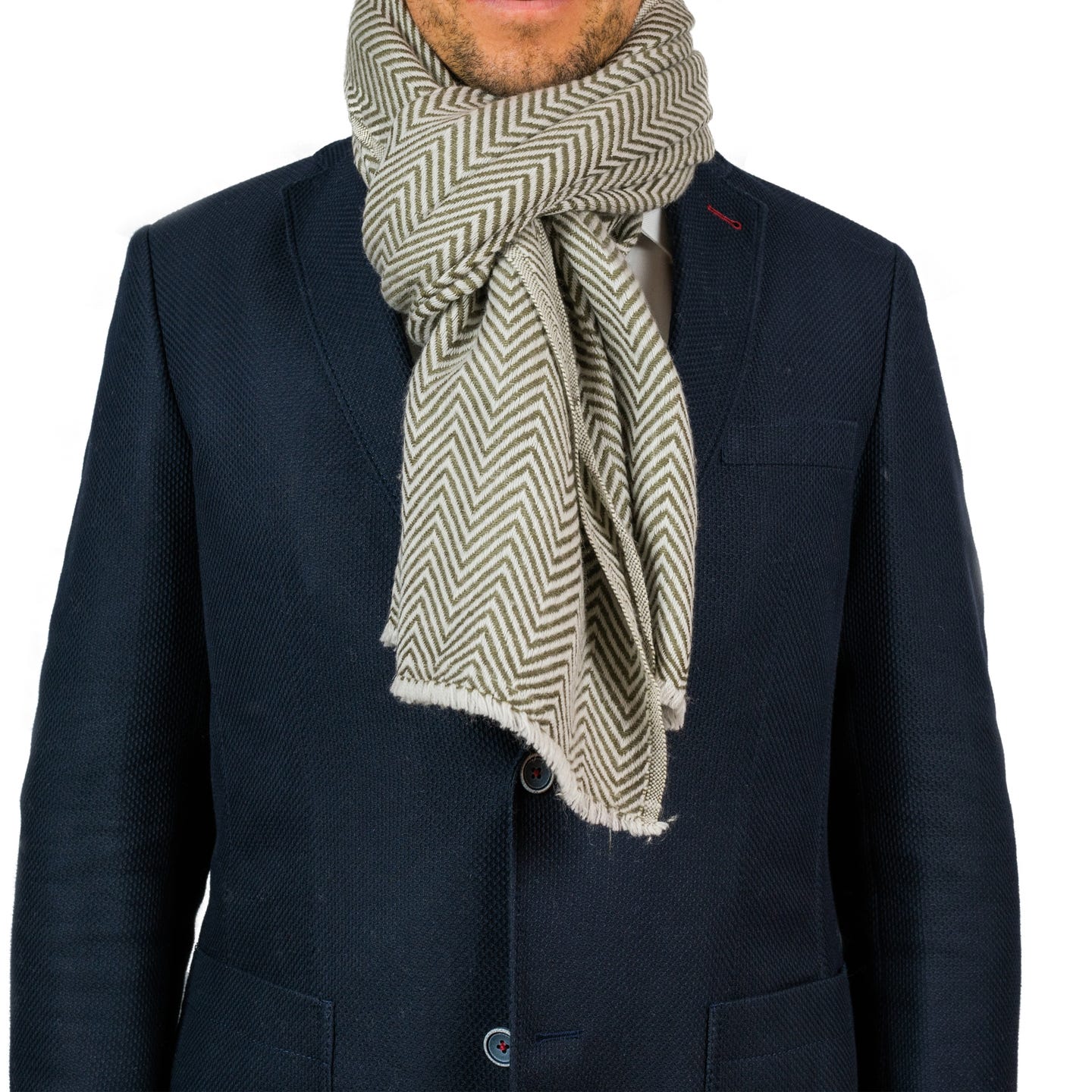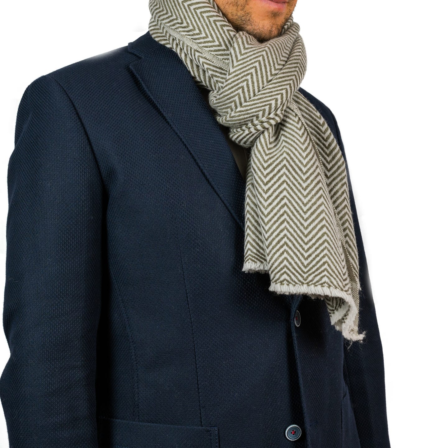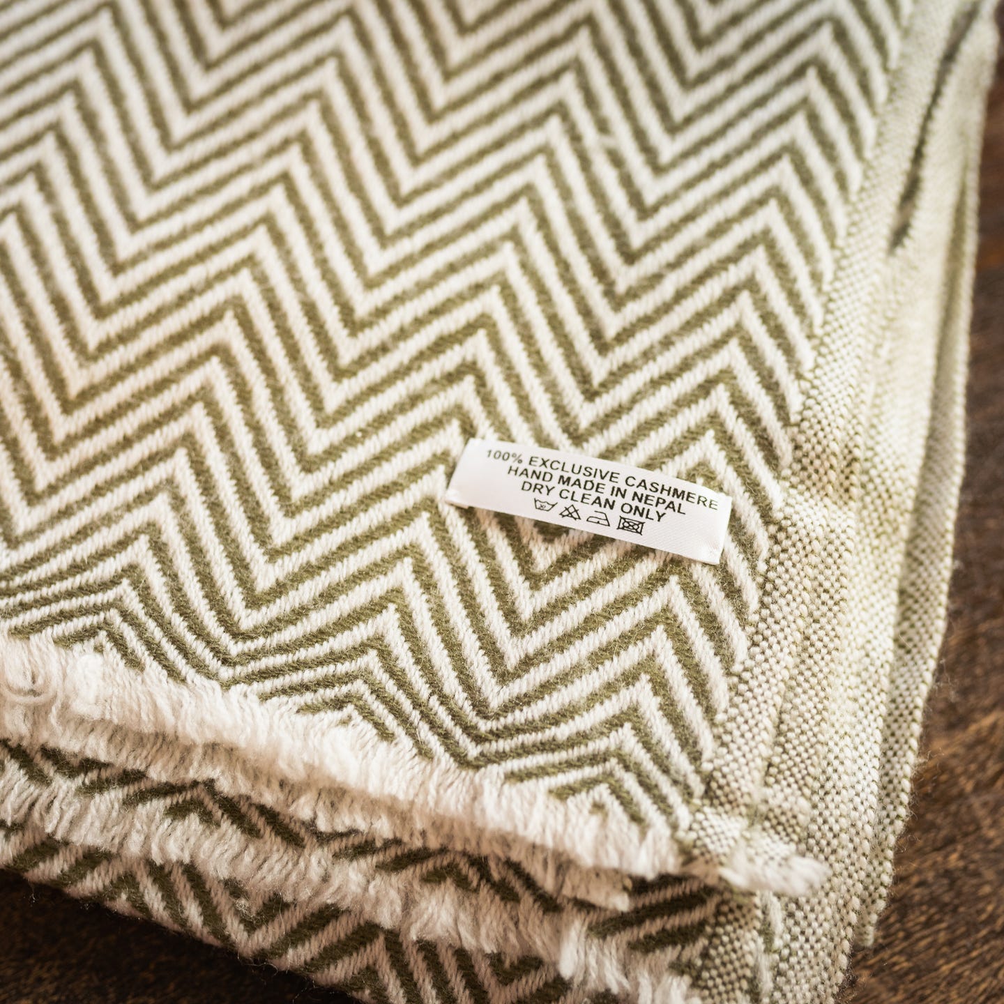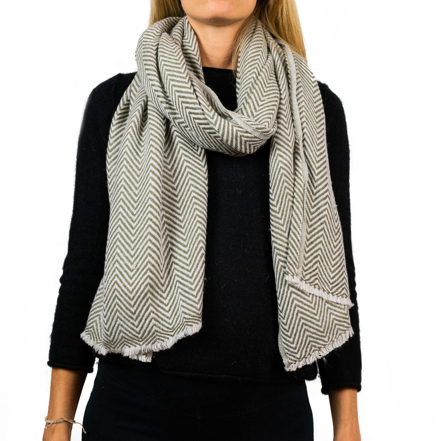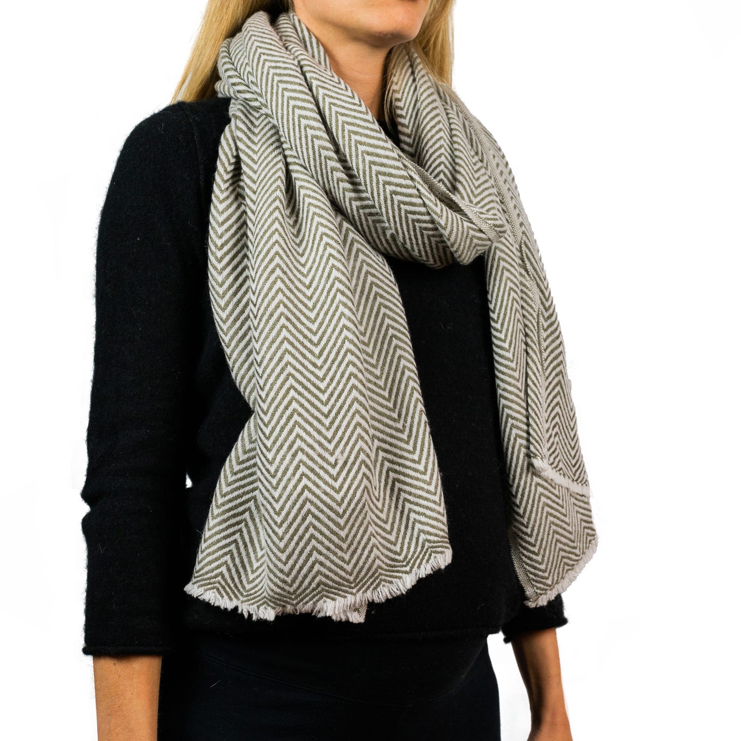 Kaschmirschal hellgrau mit mittelgroßem Fischgrätenmuster