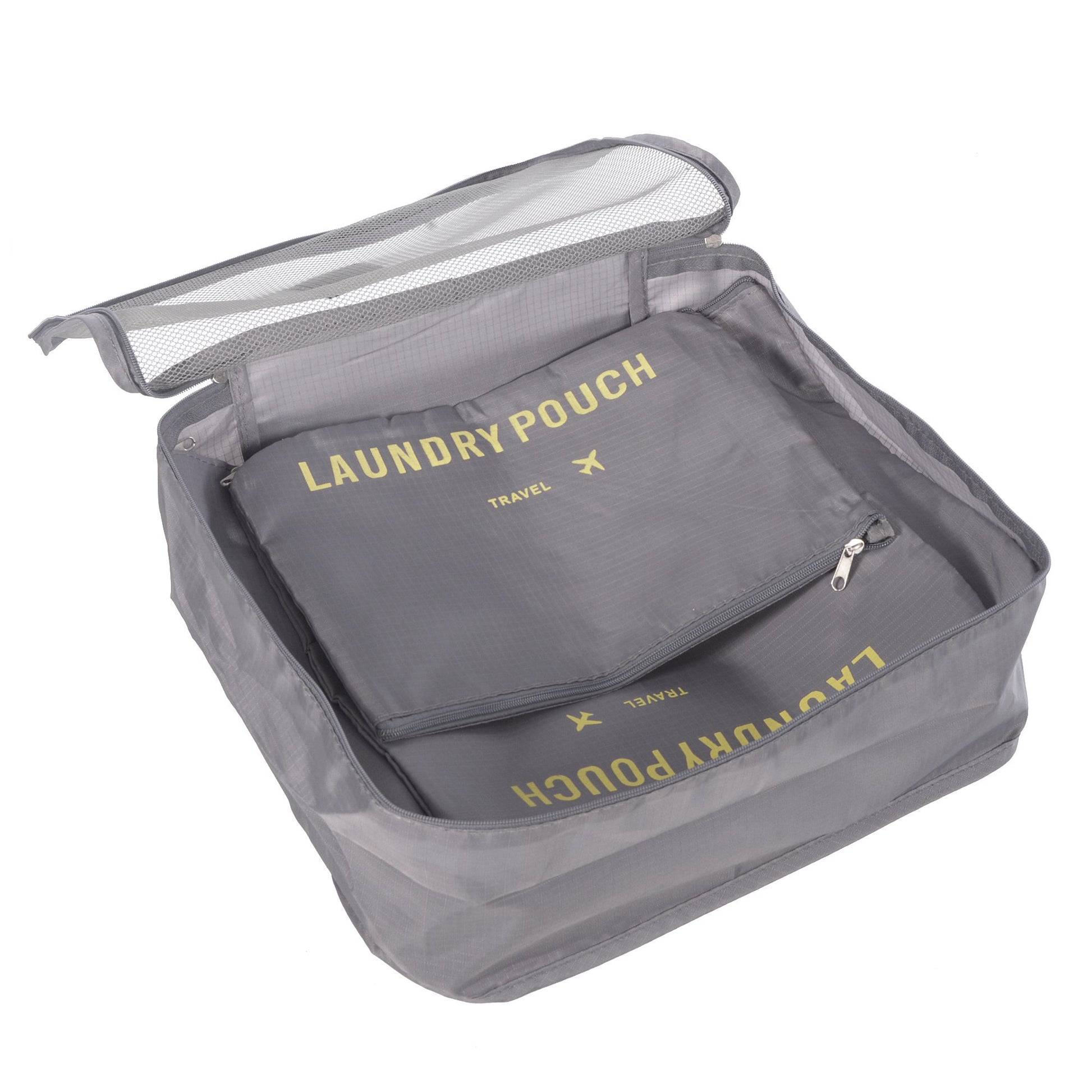 Light and durable luggage organizer cubes by Nicci helps you keep all your packables separate and well organized. A great time and space saver. Made in durable ripstop and mesh fabric. 6 organizer cubes in all! Large Zip Bag 40*31*12cm - Medium Zip Bag 30*28*12cm - Small Zip Bag 30*21*13cm - Large Pouch 34*27cm - Medium Pouch 30*28cm - Small Pouch 26*17cm, " 210D Ripstop fabric, mesh, nylon zipper