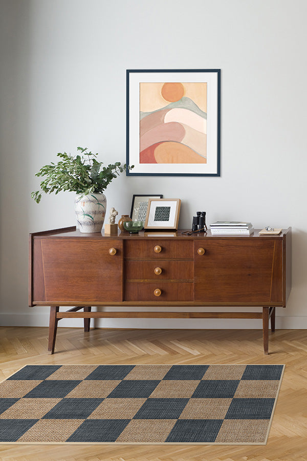 Checkerboard Soft Navy Re-Jute Rug