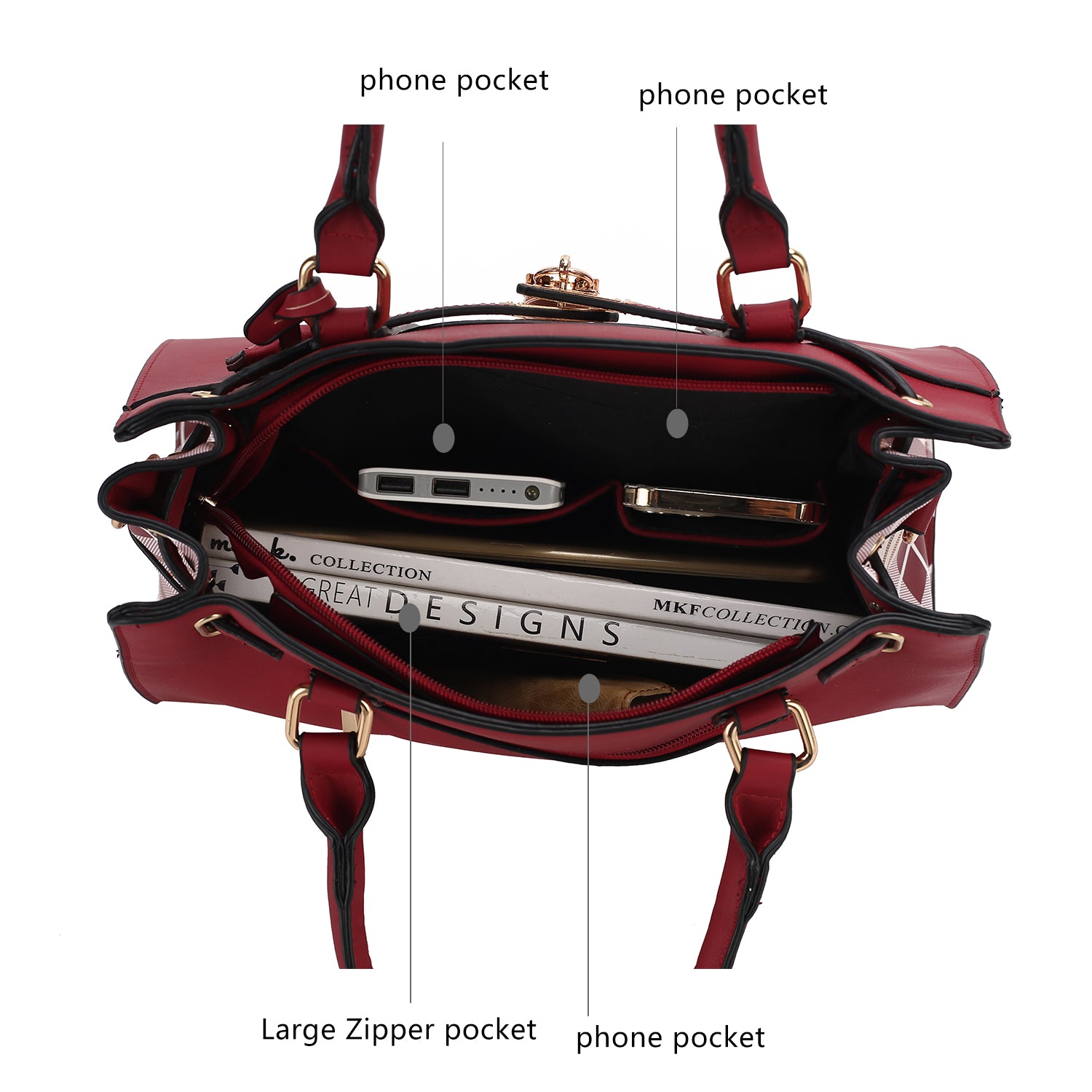 Christine Plaid Vegan Leather Satchel Bag with Wallet
