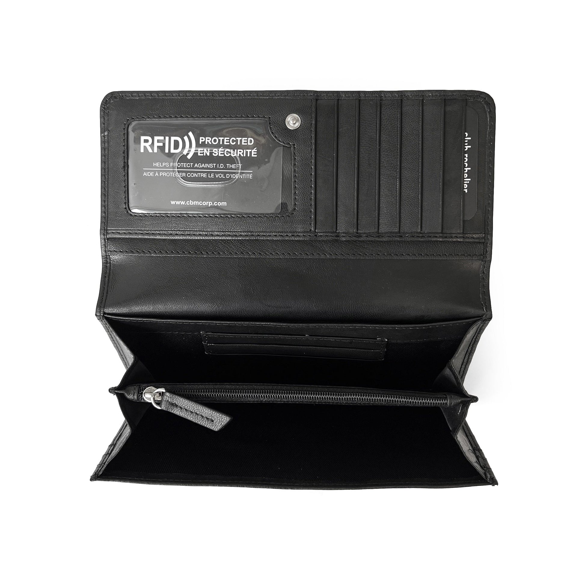 The Club Rocherlier's Expander Clutch Wallet features multi functional pockets to fit all your credit, bank and loyalty cards. Featuring the latest RFID blocking Technology to help protect you from identity theft. You will enjoy ample space for your cash, receipts and so much more!