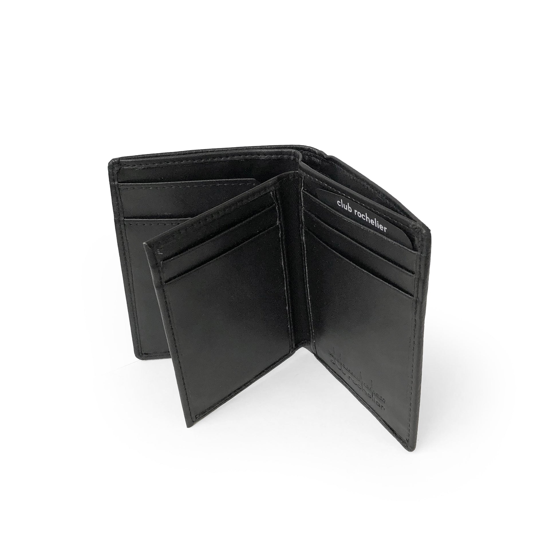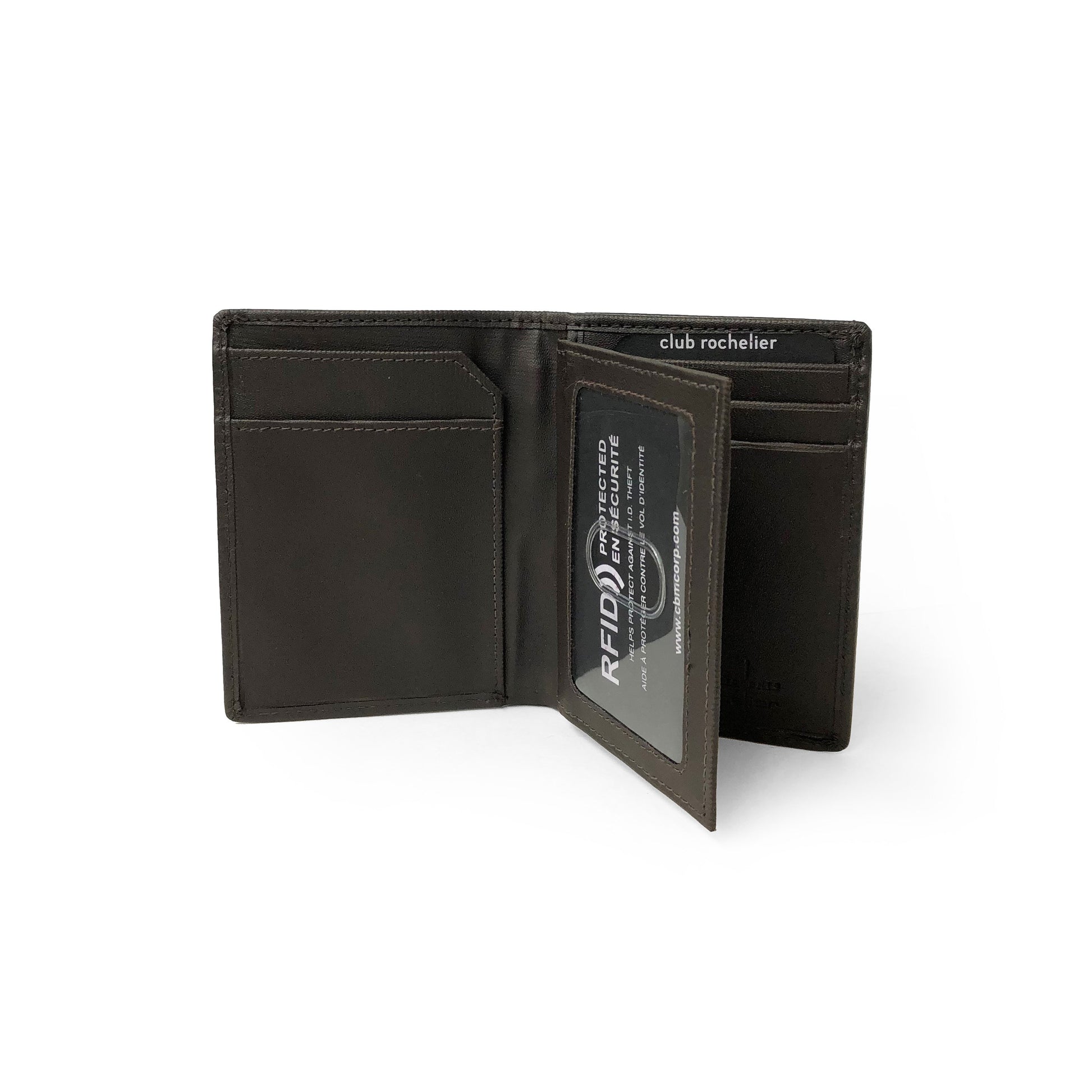 Compact and functional, this Club Rochelier Leather vertical slimfold wallet is designed to stash everything you can't leave home without. With multiple credit card slots and slot pockets for all your storage needs. This slimfold wallet also features an easy access ID window and billfold.