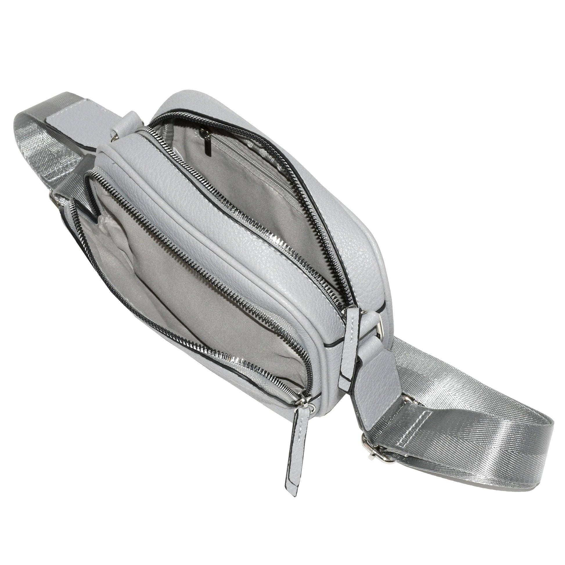 This Nicci crossbody bag with web strap is made of soft pebble PU and features a front zipper pocket for easy access to all your small items. Carry your sunglasses, cell phone, your cash and cards in the main zipper compartment. This bag makes every activity look fashionable!