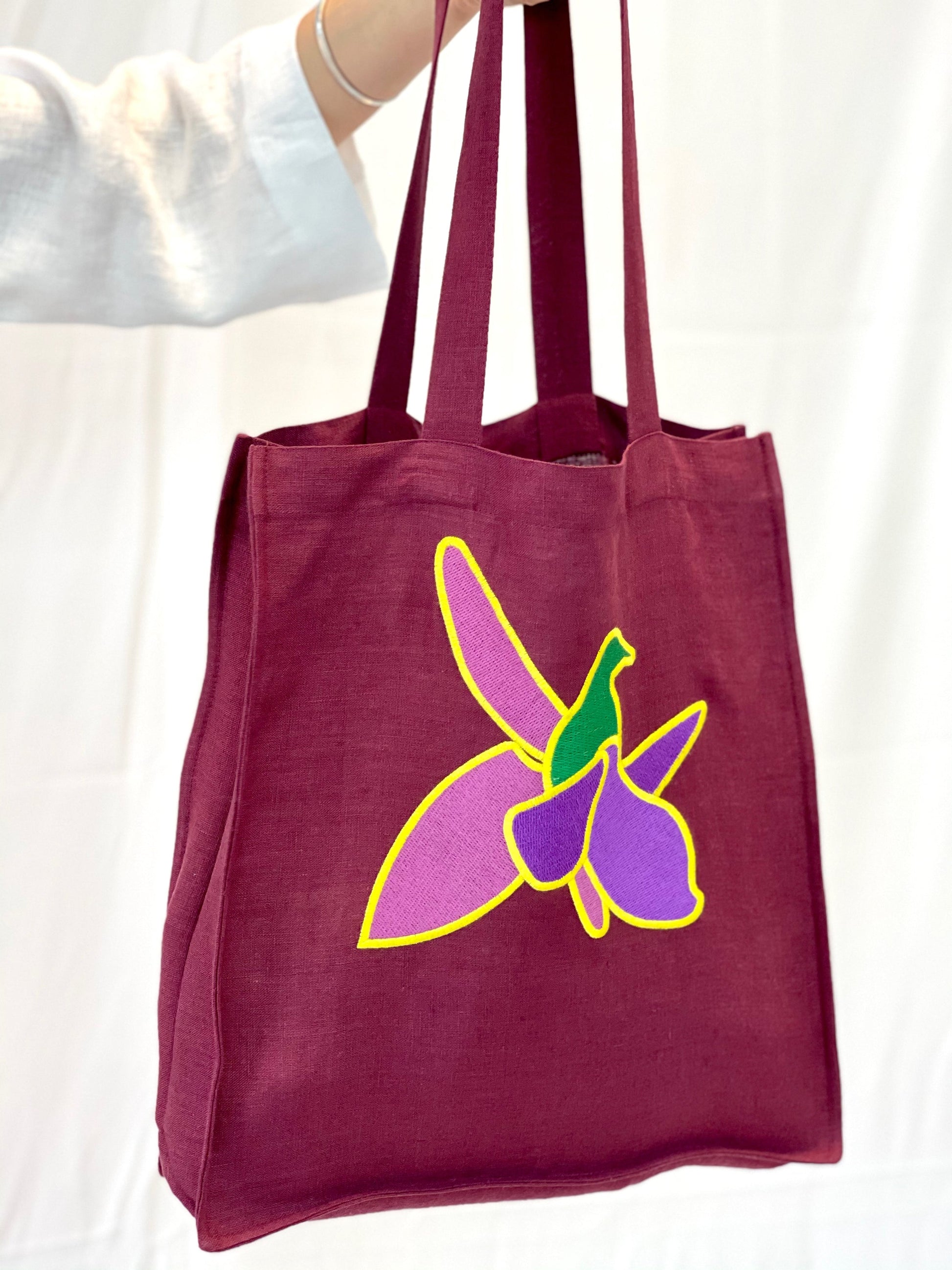 The Khari-bulbul or Ophrys Caucasica is a flowering plant endemic to the Caucasus. It is considered by some to be the "official flower" of Azerbaijan's Karabakh region. The design is inspired and sketched in-house by our creative designers with unique touches. Each bag is prepared with attention to detail, quality embroidery, and supplies. A stylish natural linen shopping bag is made from 100% stonewashed linen. Our shoulder bags are handmade and durable. It can be used for multiple purposes or simply as a casual DIY everyday bag. They are stone-washed and preshrunk, which made these bags soft to touch and easy to care for. Our tote bags are available in many different colors and you can choose your stitching color.