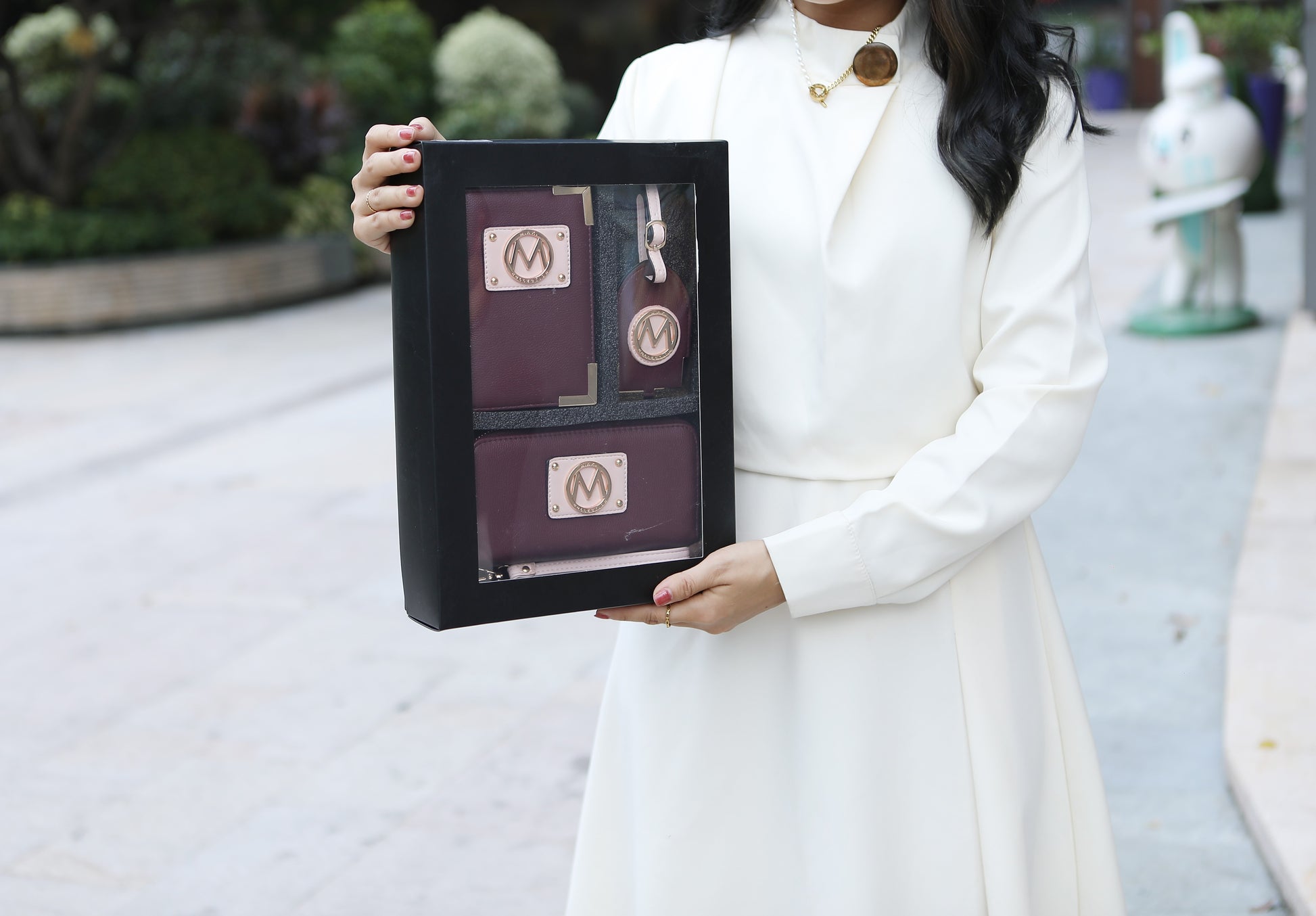 - Looking for a beautiful travel gift set for someone who loves traveling? Our Darla Travel Set is the perfect gift designed to add a touch of class to your travel accessories. The set comes with a passport holder, luggage hang tag, and a wallet with plenty of space. Crafted from color block pebbled high-quality vegan leather, and designed with gold-tone embellishments, this set combines style with organization.
