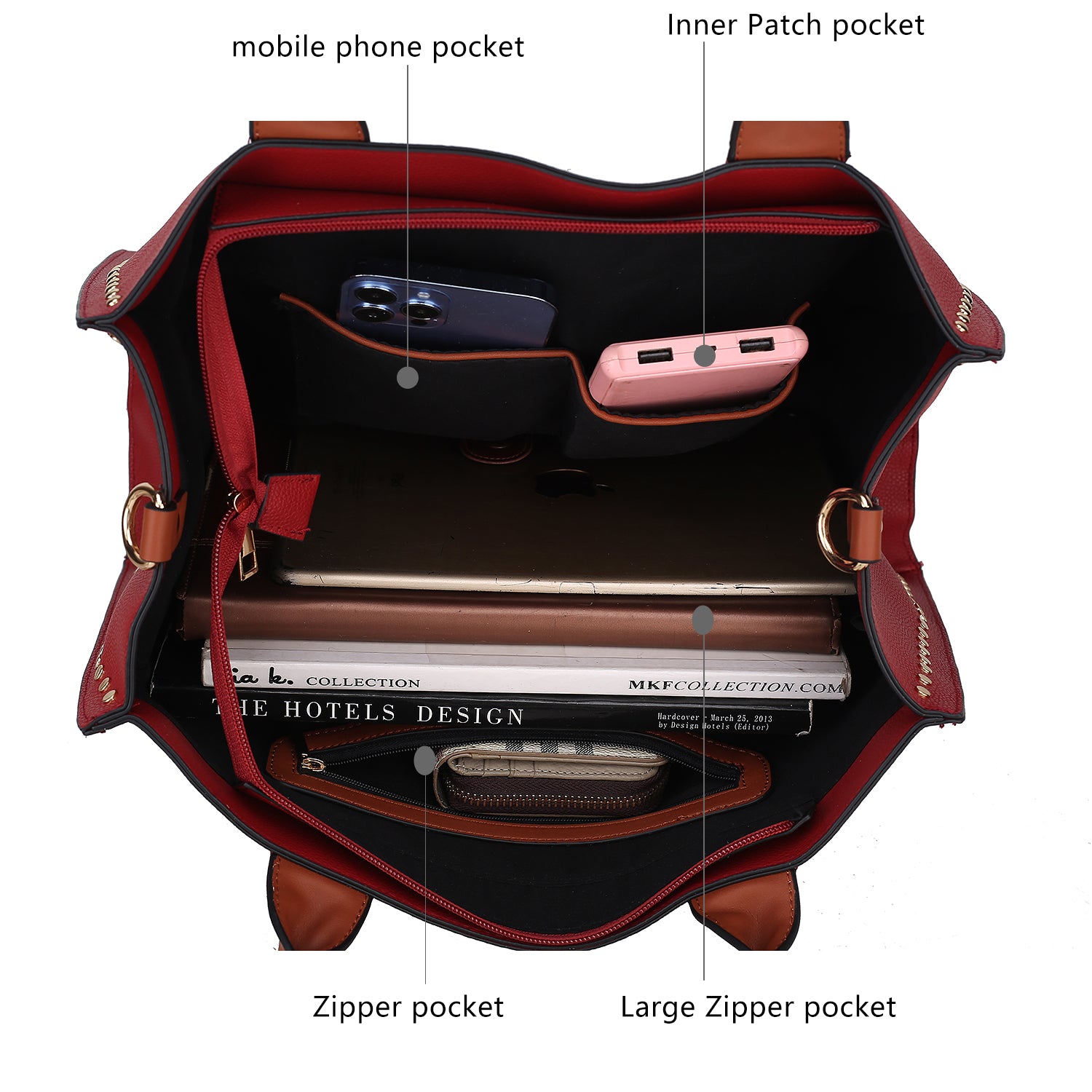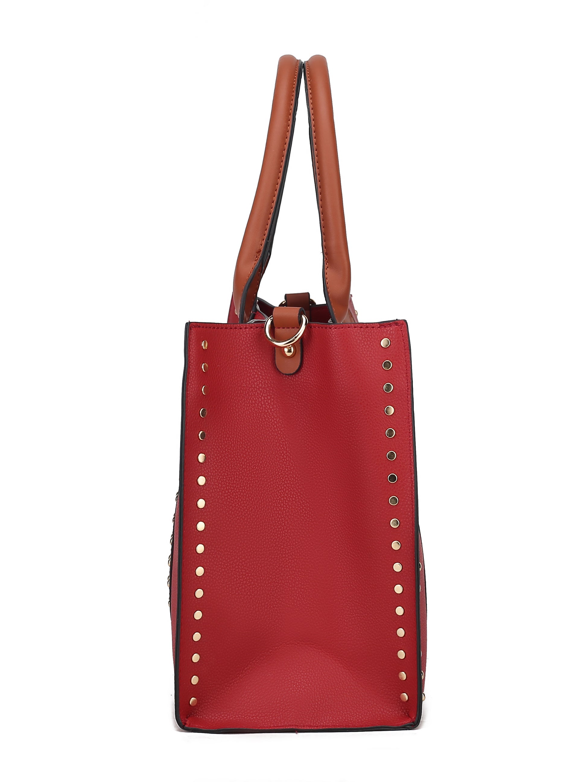 Designed in a softly structured silhouette, our Davina Tote Bag is the ultimate finishing touch to create a polished look. Rendered in high-quality pebbled vegan leather, with a color-blocked finish, and designed with gold-tone embellishments, this tote will become your favorite everyday accessory. Unzips it to reveal a fully lined interior with slip pockets and a wall zippered pocket. The top handles are smooth and comfortable for holding or attach the adjustable strap to wear it crossbody when the mood strikes. The Davina Tote Bag has a flat base for stability. It comes with a matching wallet.