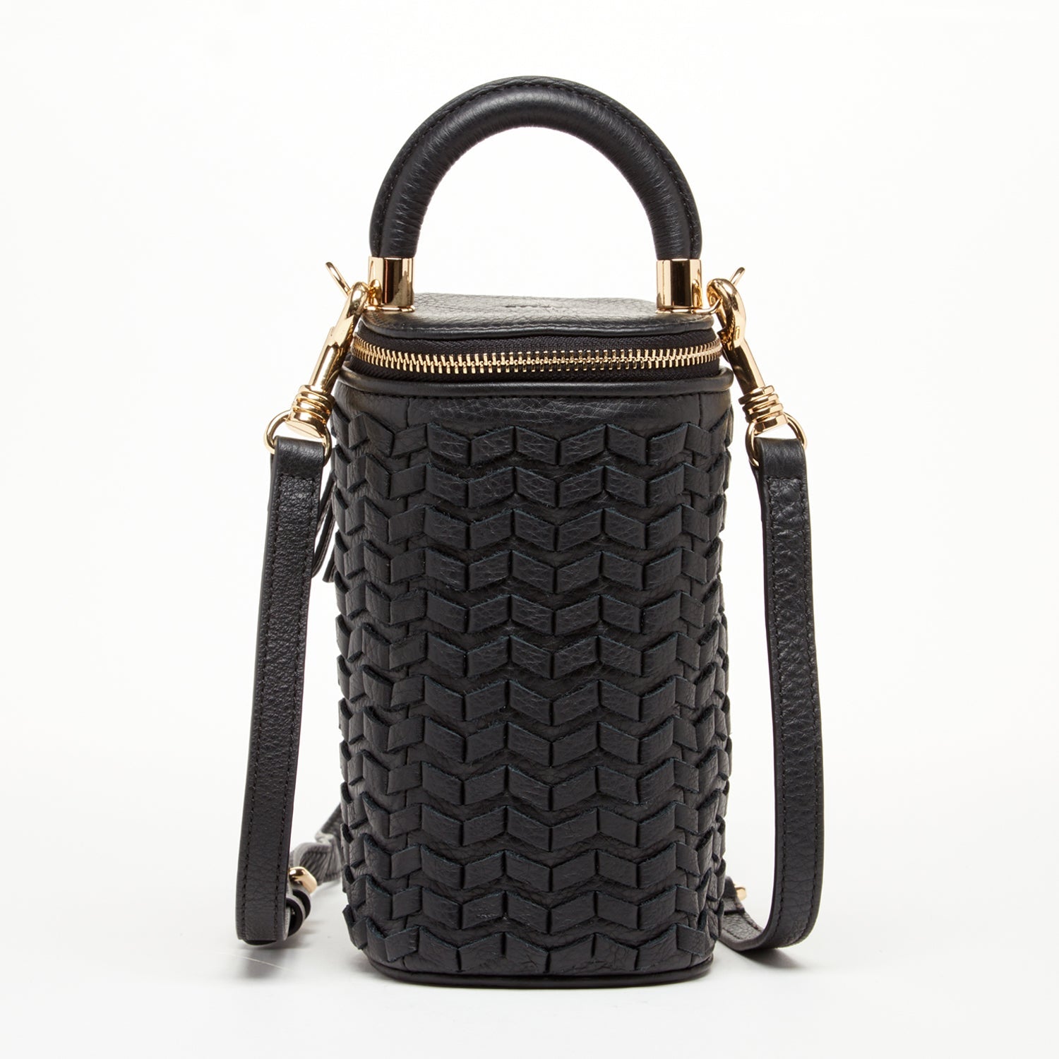 SUSU Mini Purse Leather Black Crossbody Bag Weave Small Bucket Bag