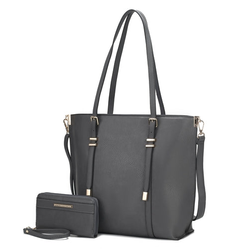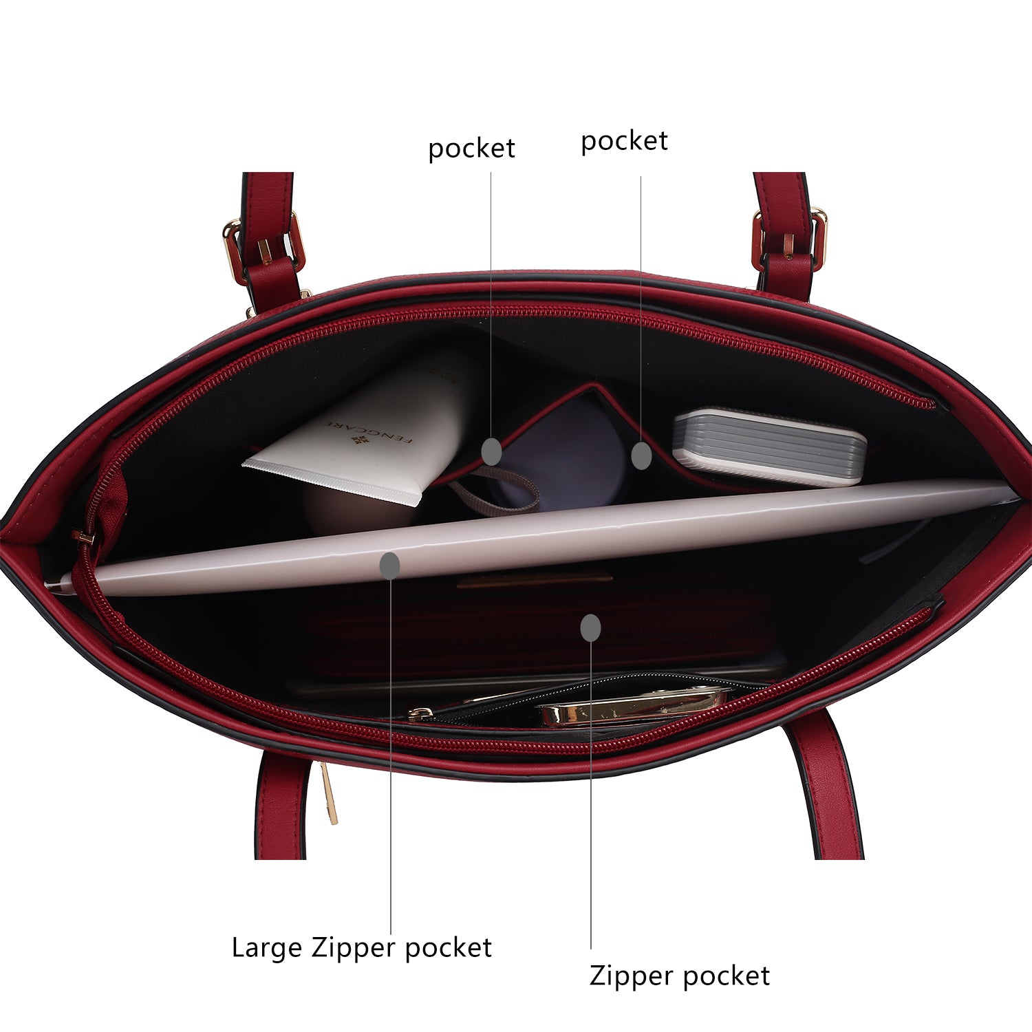 - The Emery Tote bag features adjustable shoulder straps. Open the top zipper closure to reveal a fully lined well-organized interior with dedicated pockets for your phone, wallet, and other small items. Carry it by the top handles or attach the adjustable crossbody for multiple carrying options. This style has a flat base and feet for stability. The Emery Tote Bag comes with a matching wallet. You will love this both practical and polished style.