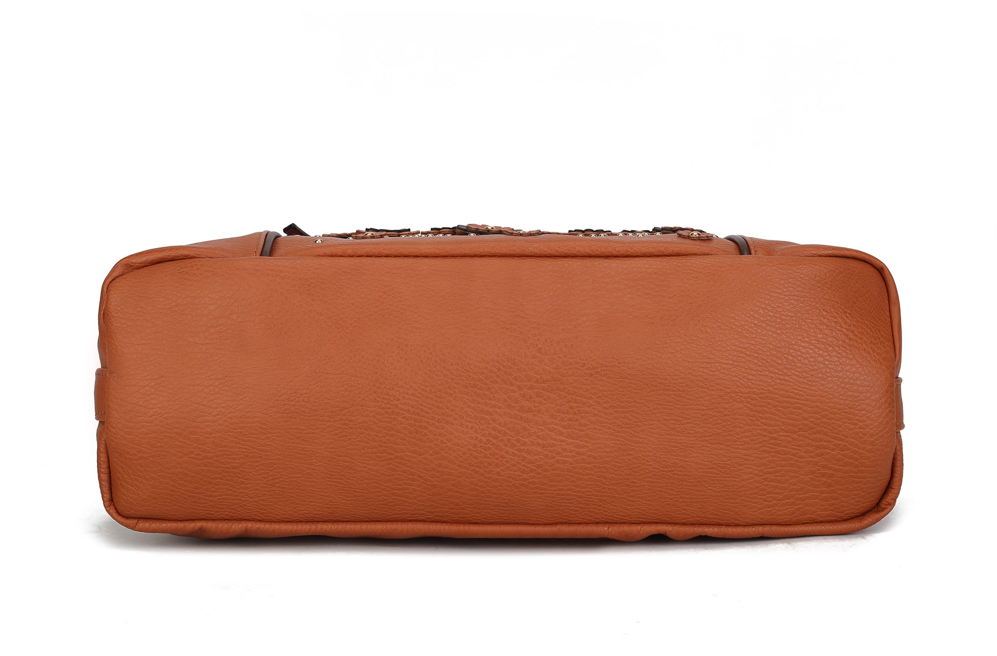 - Looking for flowers that never fade? A 3-D color block and floral design with studs make this Francis Tote Bag a lovely way to carry your belongings. Made of high-quality grainy vegan leather, this Bag features a detachable and adjustable shoulder strap for everyday versatility. Designed with gold-tone embellishments, the Francis Tote Bag unzips to reveal a fully lined interior with slip pockets and a wall zippered pocket. It has a convenient exterior zipper pocket and is accented with a signature charm. It has a soft silhouette and a flat base for stability.