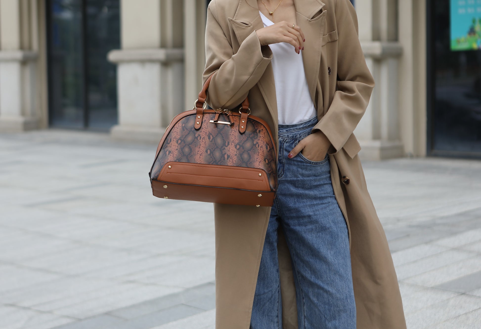 - FEATURE: Crafted from high-quality vegan leather, matching with a faux snake embossed material, The Frida Satchel is our classic Satchel that can be worn two ways: smooth top handle or smooth crossbody detachable and adjustable strap. Designed with Luxurious gold-tone embellishments, unzips the double zipper puller to reveal a one-compartment bag, with a wall zipper pocket and two slip pockets. The exterior features a convenient back zip pocket. It comes with a matching wallet
