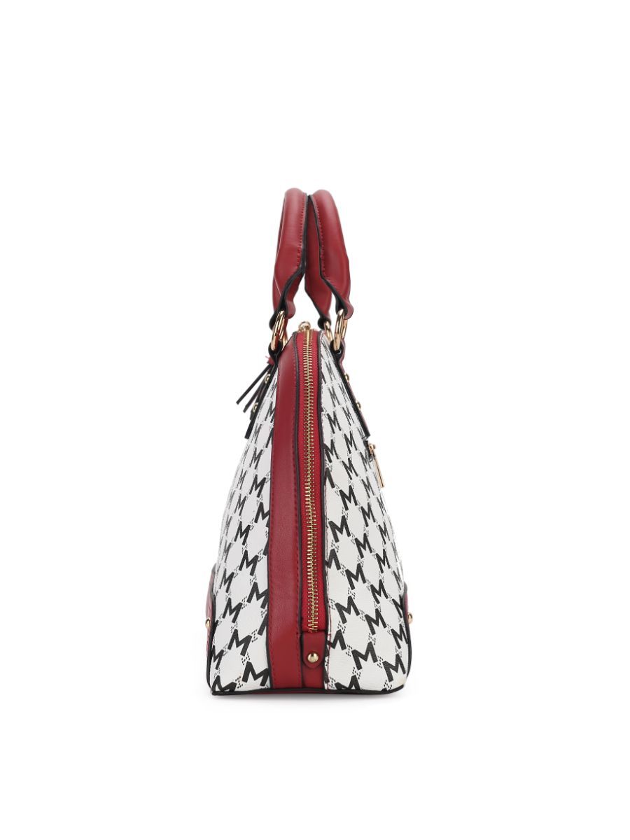 This exquisite satchel handbag exudes sophistication with our M emblem printed on it. Crafted from high-quality faux leather, the bag combines durability with a luxurious feel. The print features a harmonious blend with the smoothy trims, which tastefully complemented by elegant gold-tone hardware, adding a touch of glamour to your ensemble.