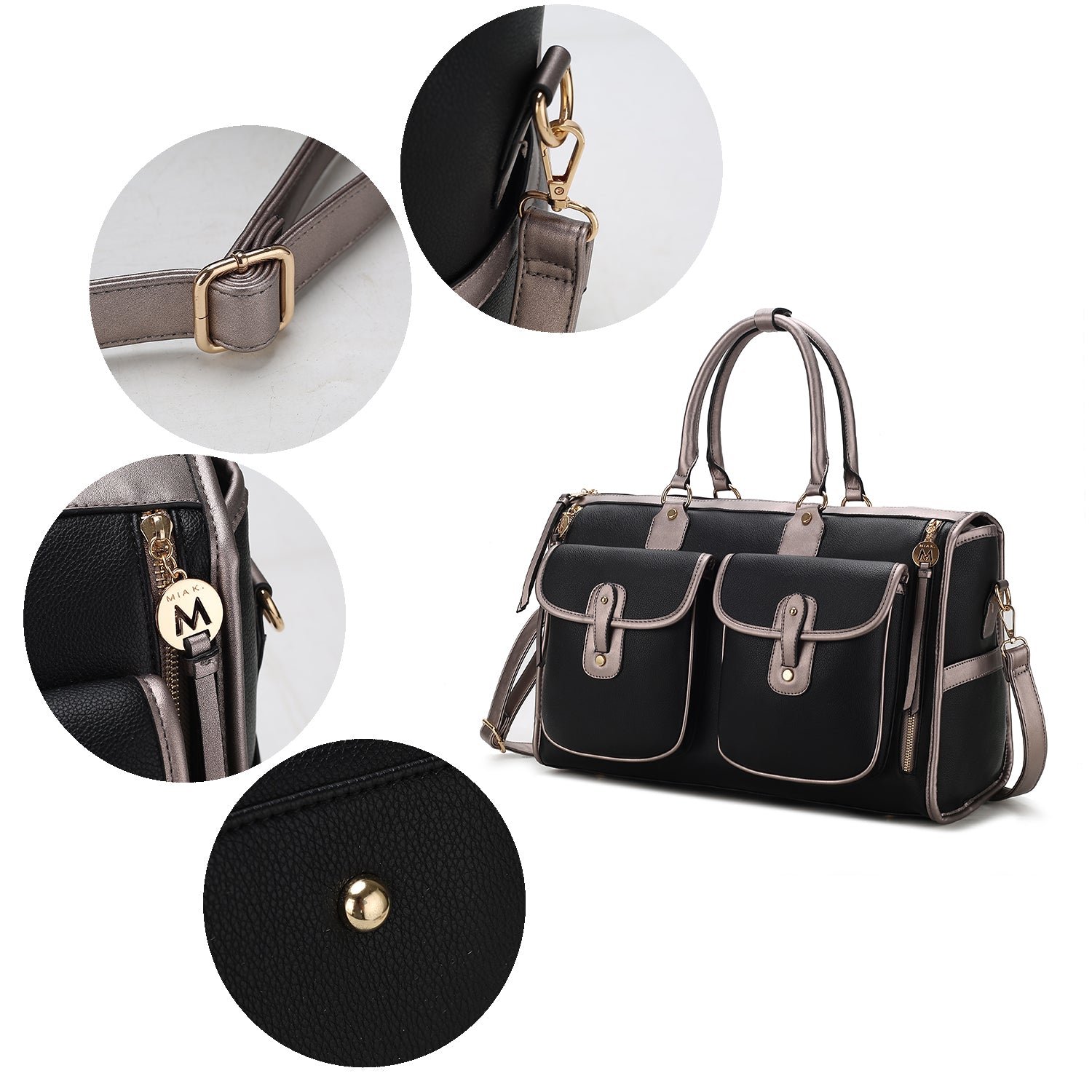 Genevieve Duffle Handbag Color Block Vegan Leather Women