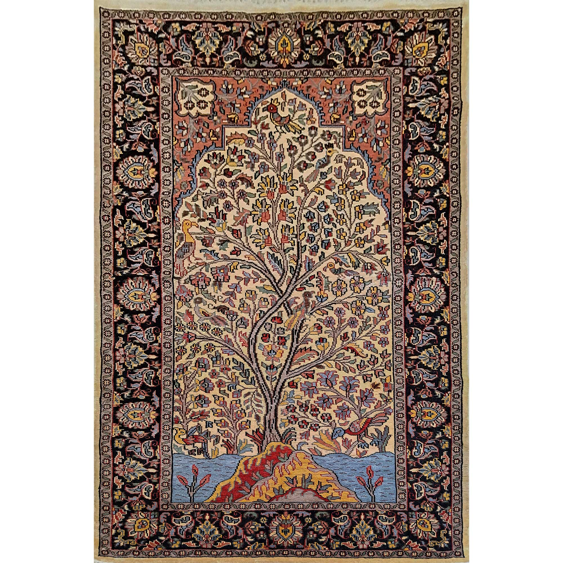 Hand Knotted Tree And Birds Oriental Silk Carpet