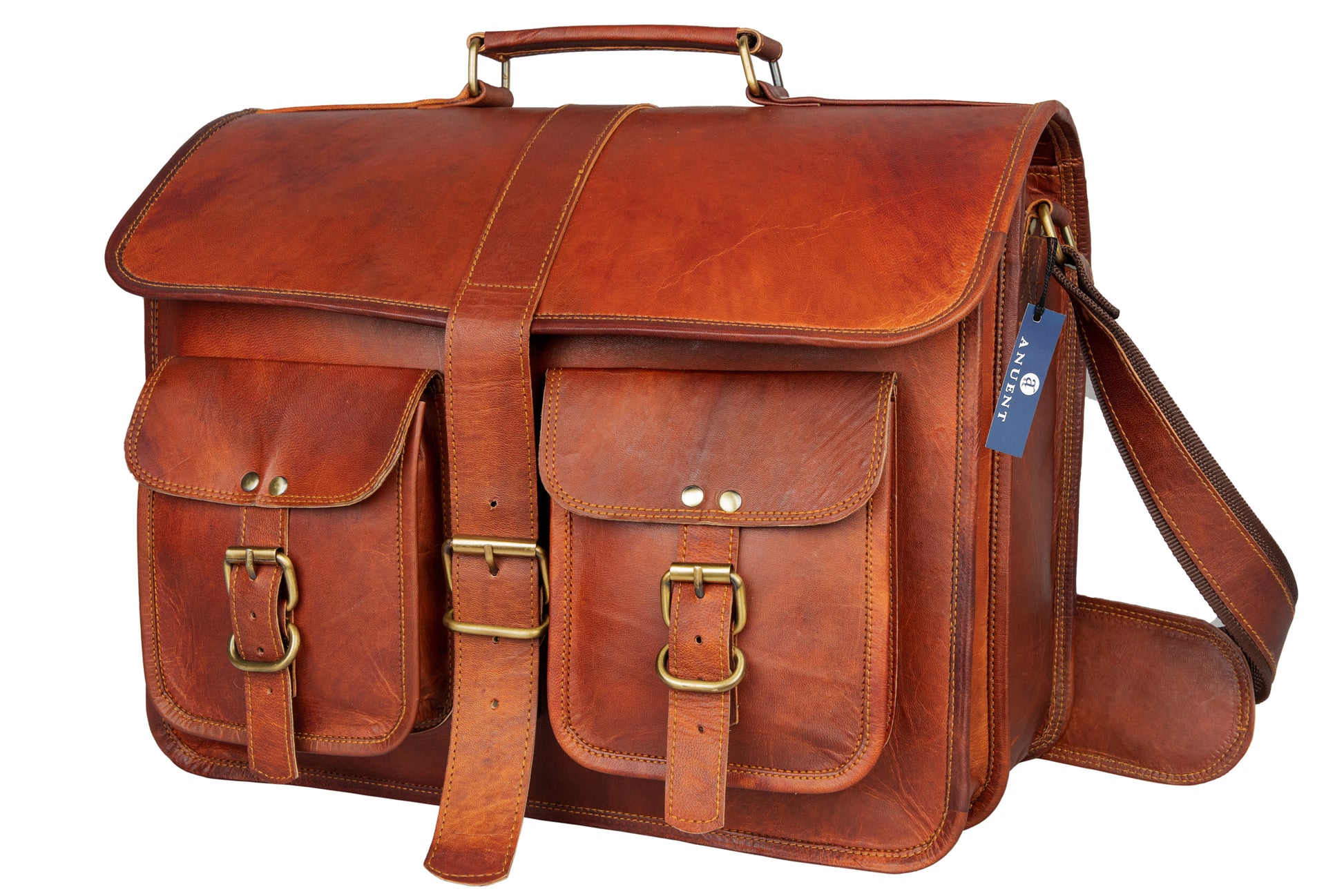 Handmade 16" -18" Leather Laptop Messenger Crossbody Bag For Unisex.